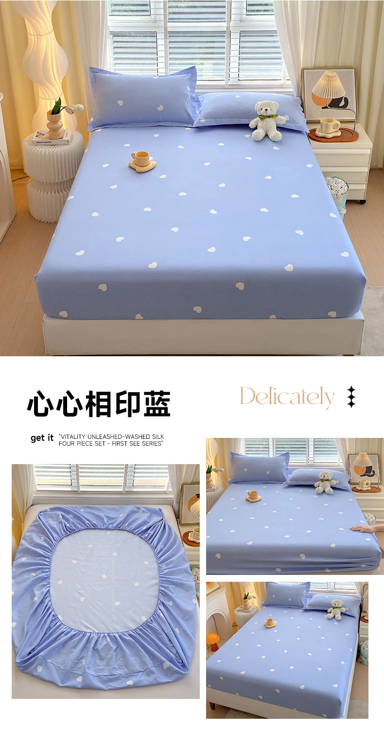 商品名称:金丝兔 2025新款植物羊绒磨毛单床笠 心心相印蓝