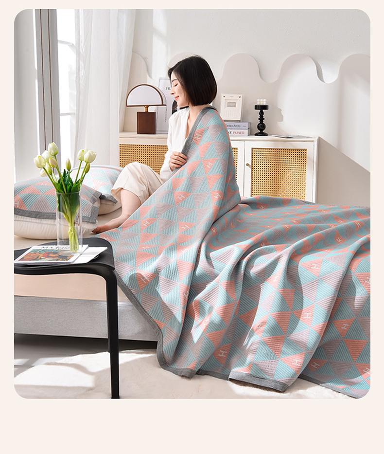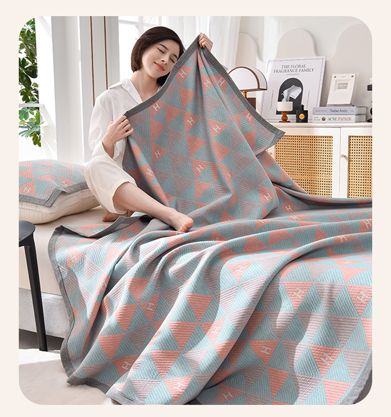 (总)米奈家居 2025全棉针织棉提花多功能盖毯,豆沙粉EN,豆沙粉H,公主粉,莱茵绿,玛雅灰,柠檬黄,绅士灰,天空蓝,香槟金EN,香槟金H,星空灰