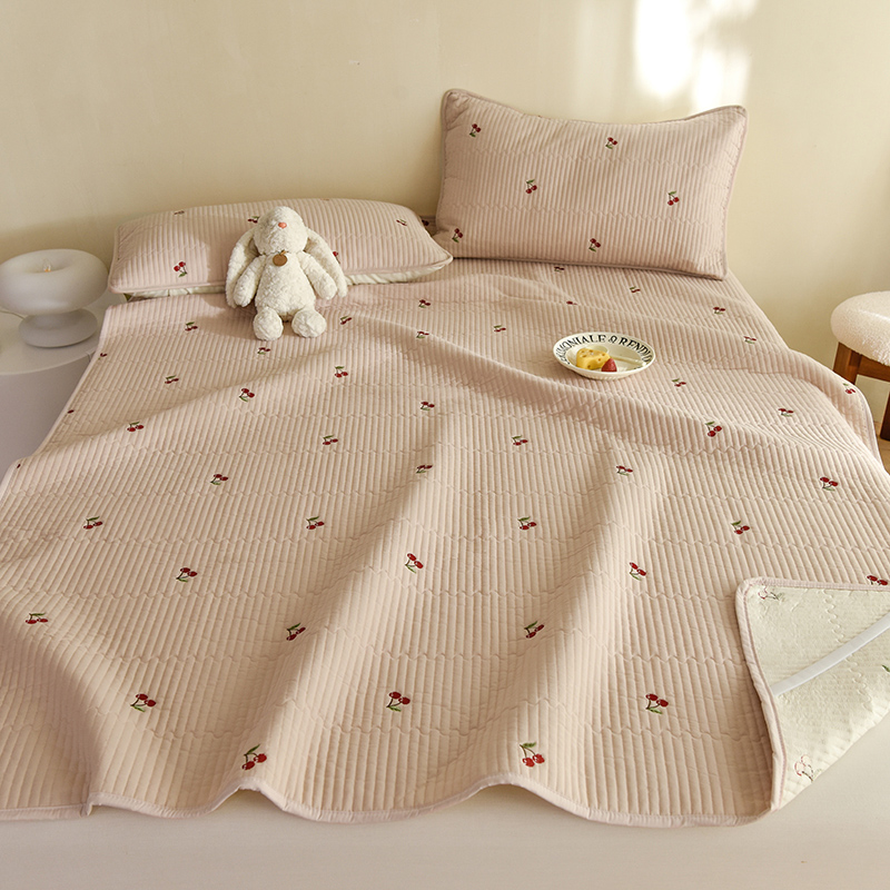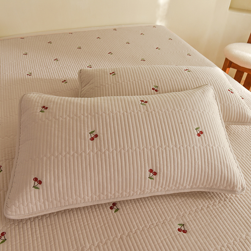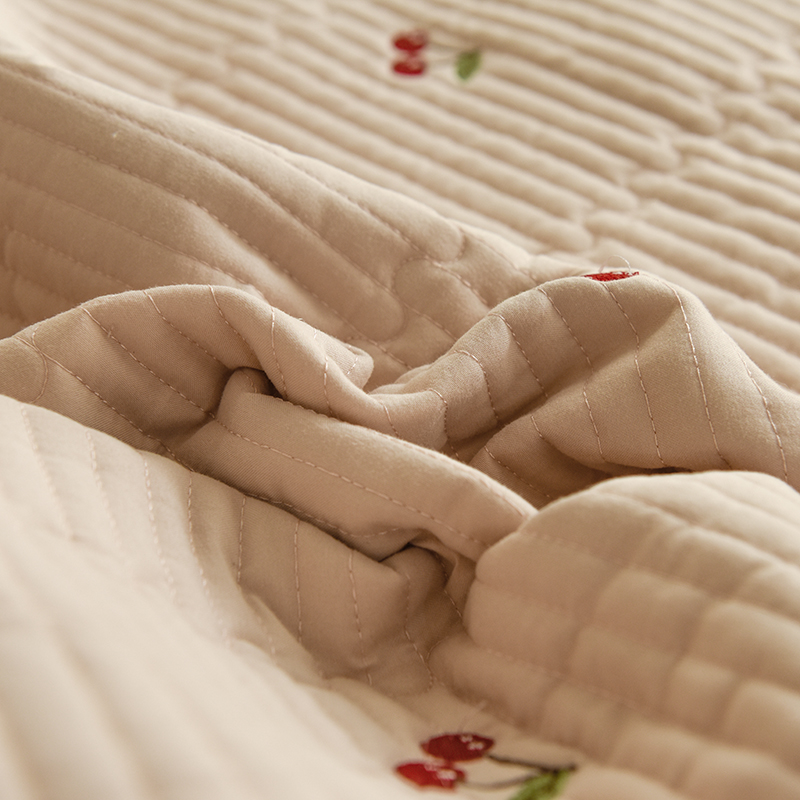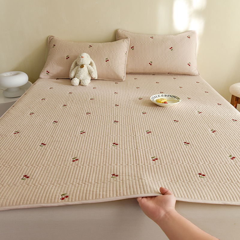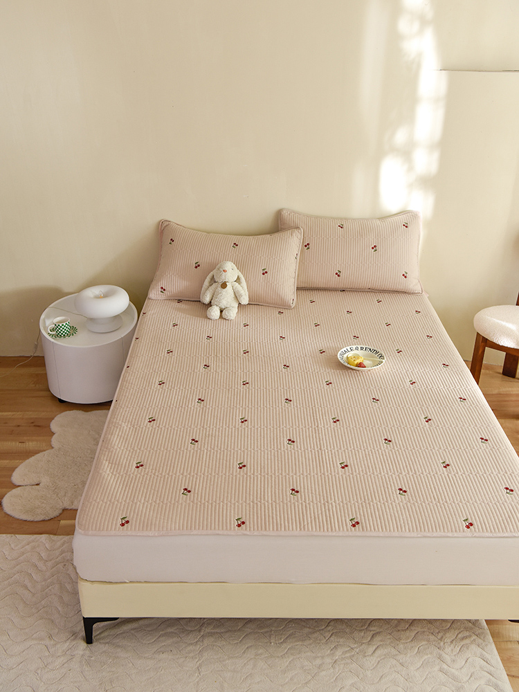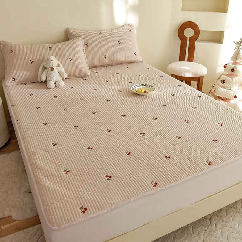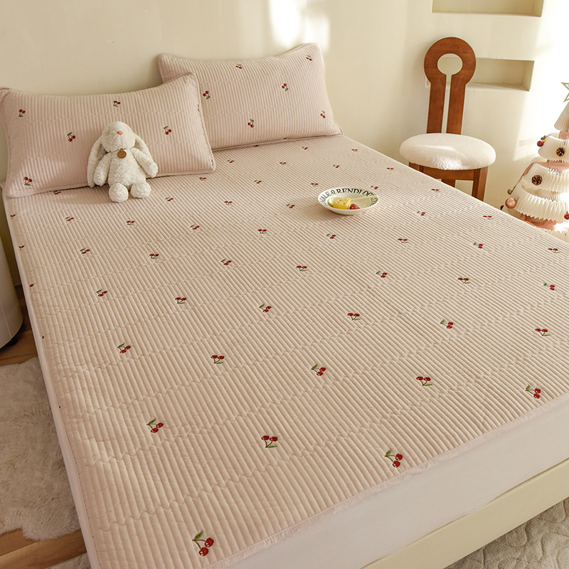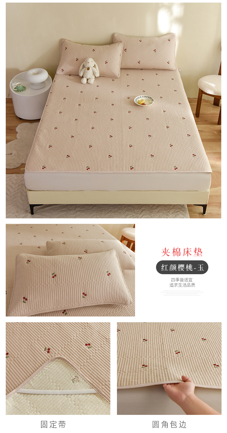 商品名称:美达家纺2025新品纯色刺绣水洗棉夹棉床垫 红颜樱桃-玉