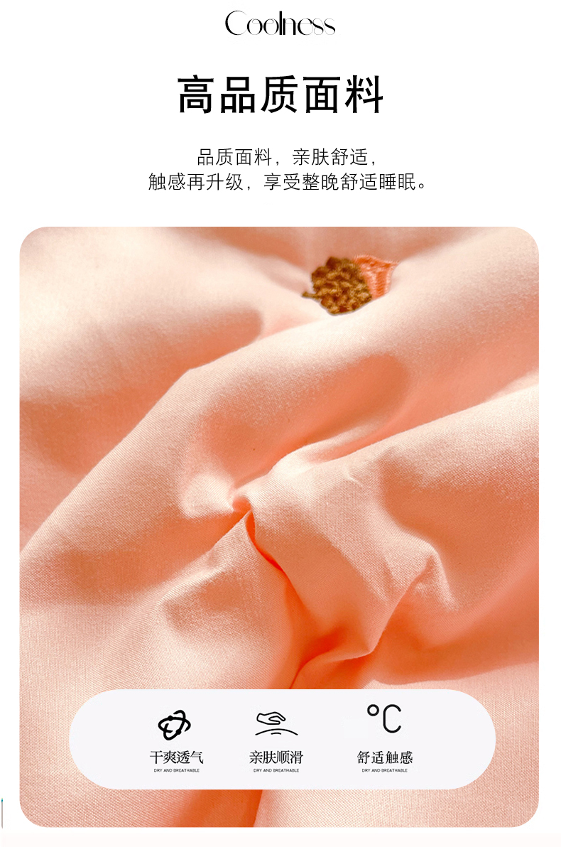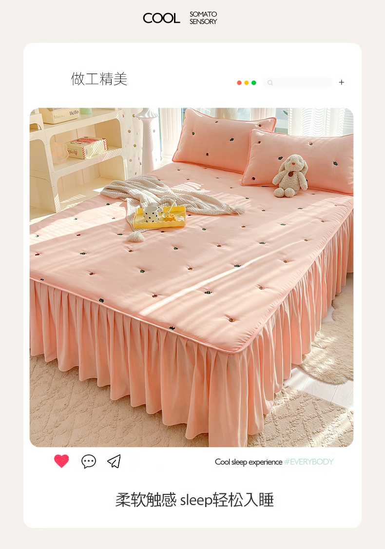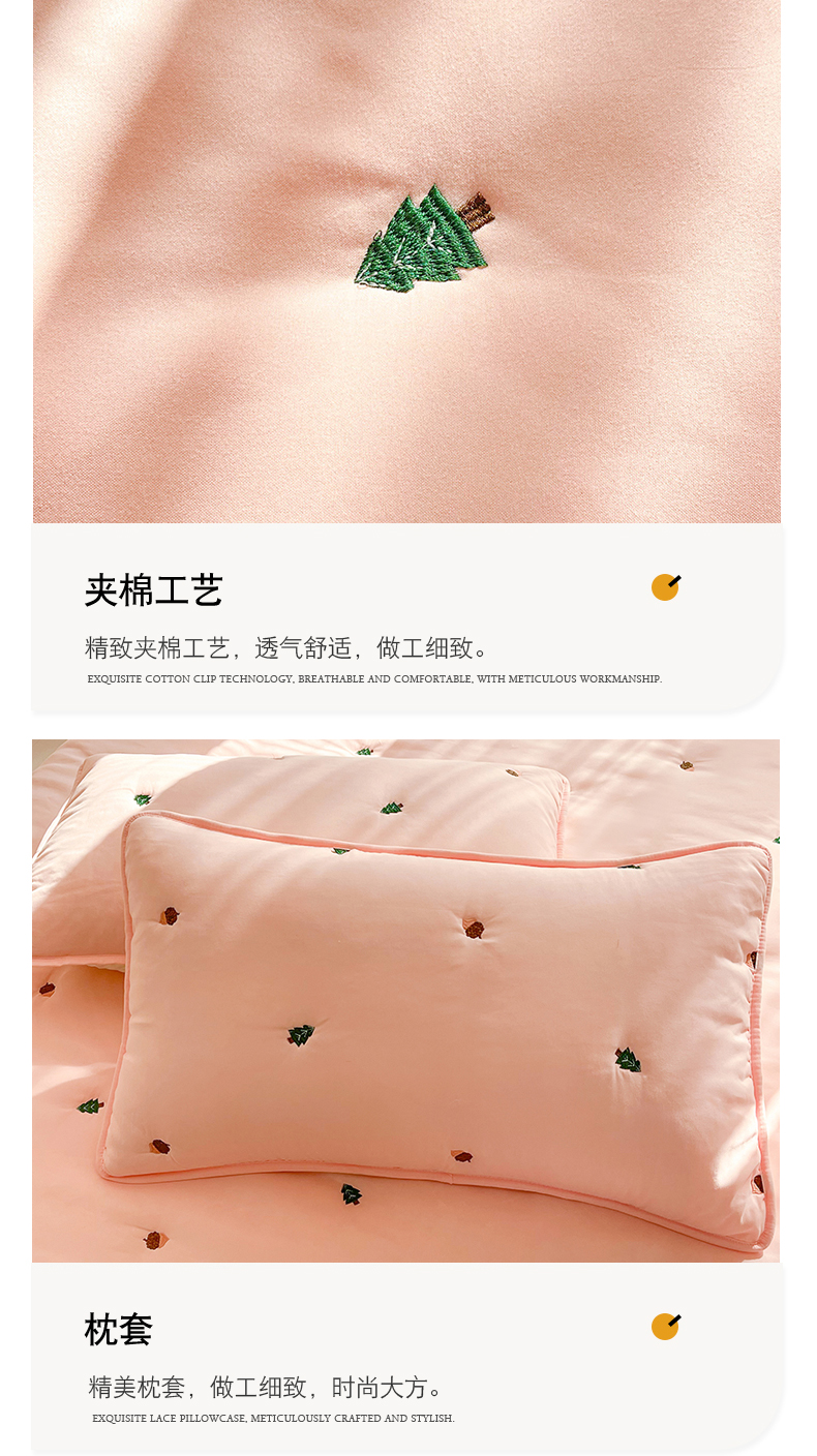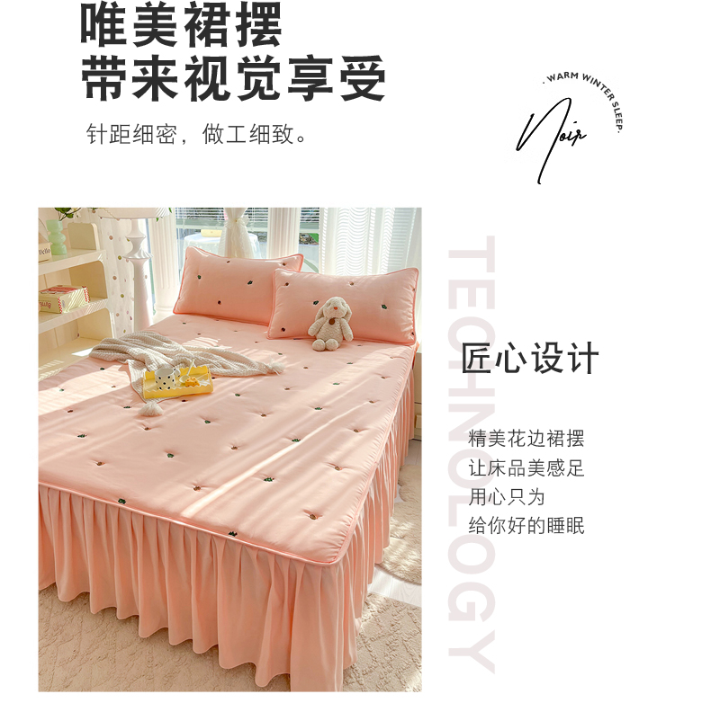 商品名称:美达家纺2025新品纯色刺绣水洗棉夹棉床裙 森林-粉