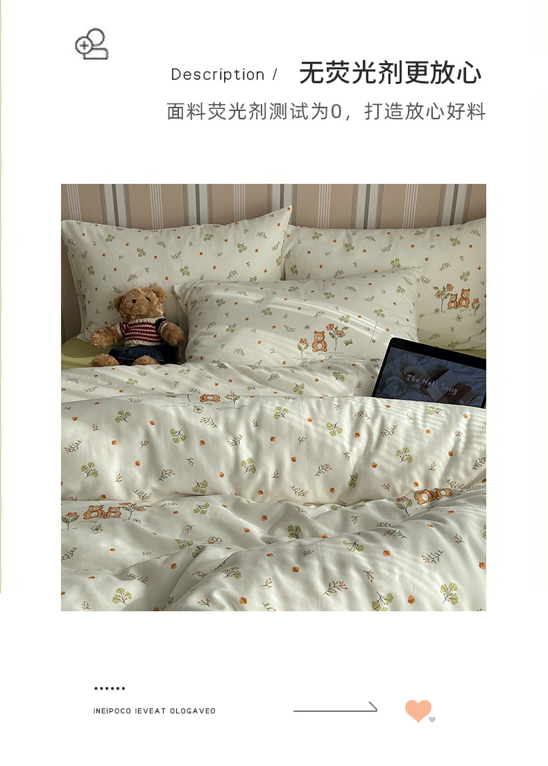 商品名称:卧趣2024新款A类全棉有氧双层纱四件套 三只小熊