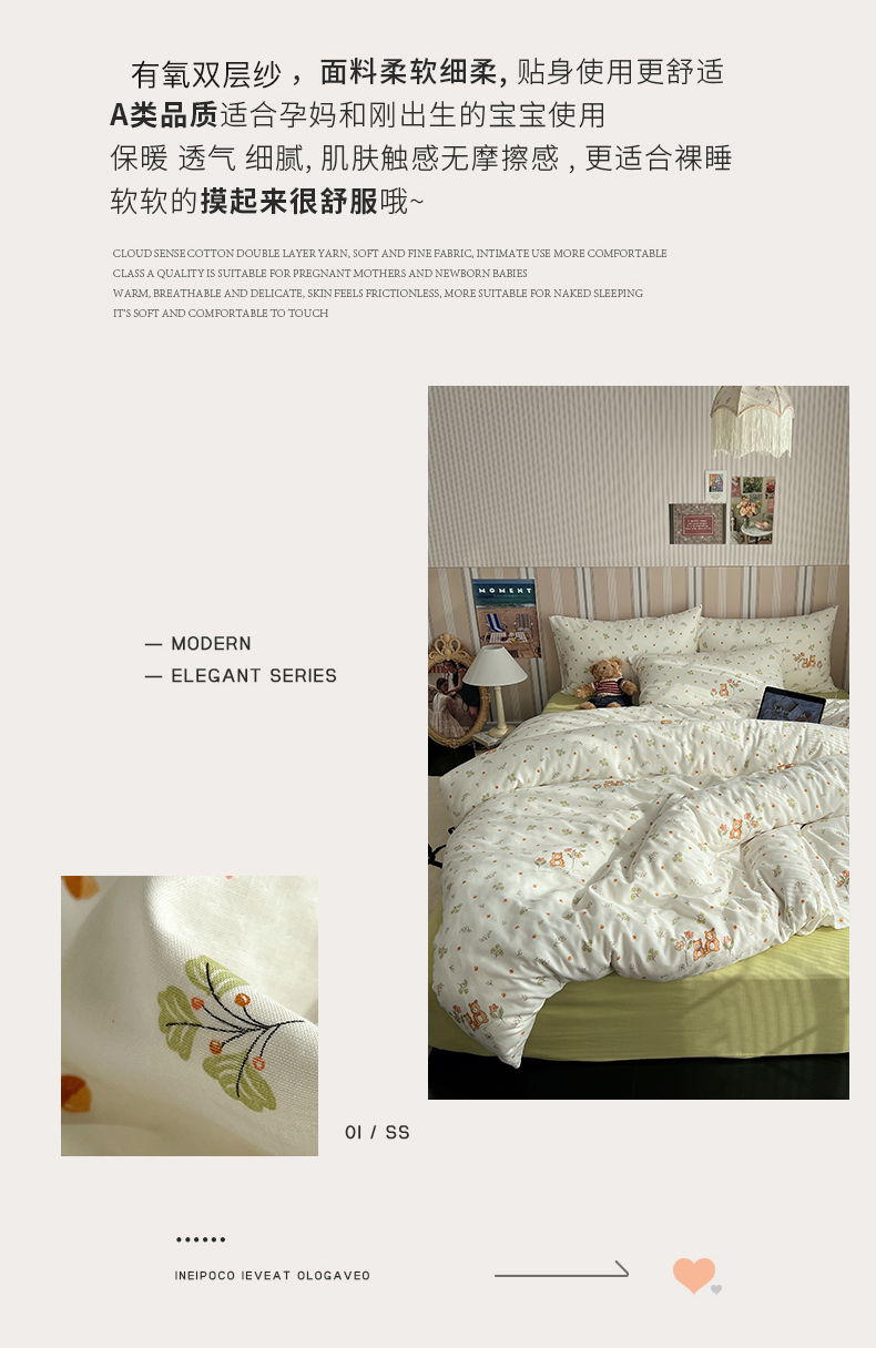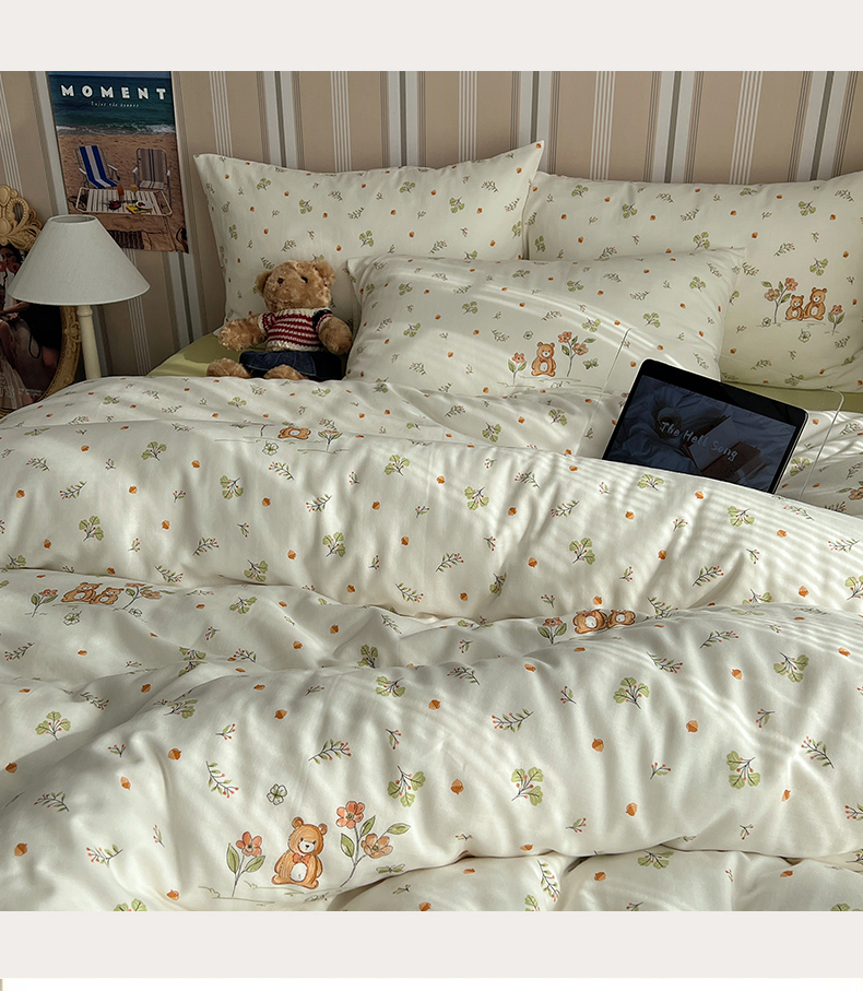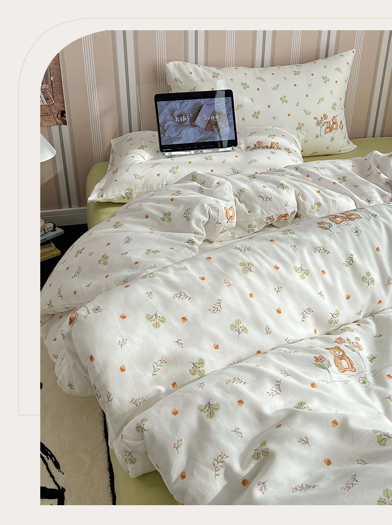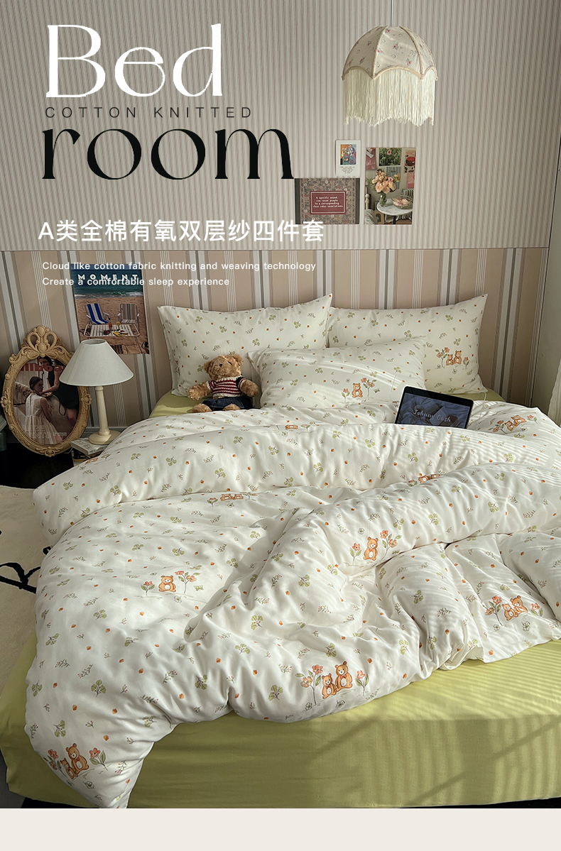 卧趣2024新款A类全棉有氧双层纱四件套 三只小熊