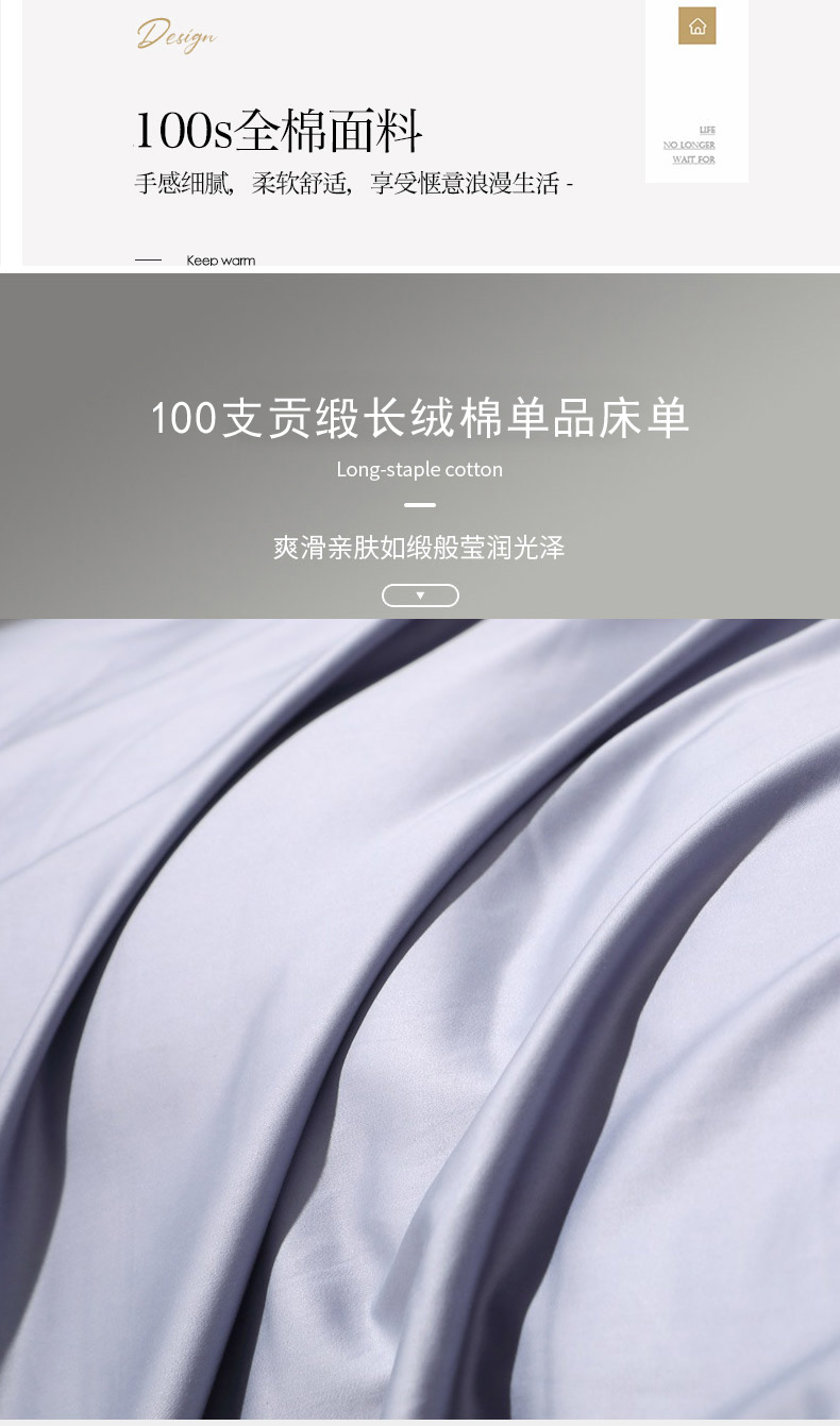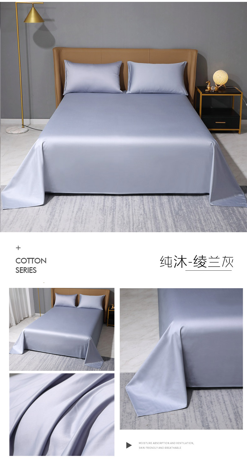 商品名称:晶缦家纺 2024新款100S全棉贡缎长绒棉纯色四件套和单品-纯沐系列 单床单 纯沐-绫兰灰