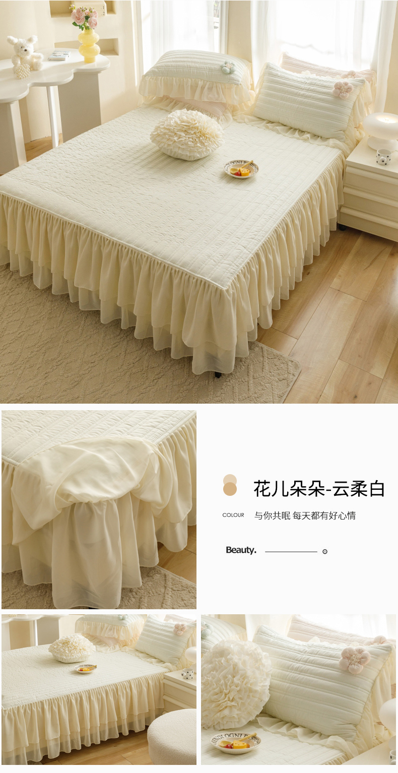 商品名称:(总)胜权家纺 2024新款A类水洗60支全棉工艺款夹棉单床裙