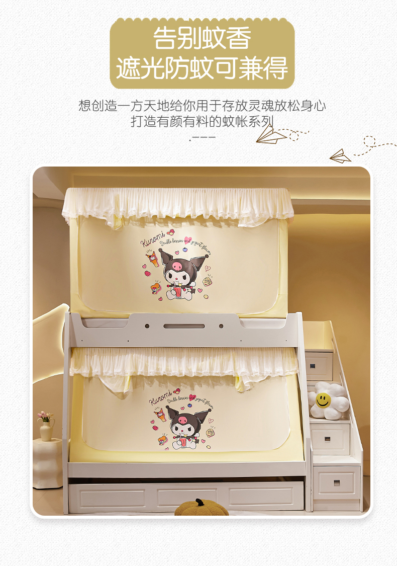 (总)安金蚊帐2025新款防蚊遮光一体99%强遮光学生宿舍上下铺遮光学生蚊帐-黄色系列,好学布布,团布布,星泡泡,贪吃猫,野餐猫,好拍档,好学卡卡,小花熊,尼尼熊,小猫莉