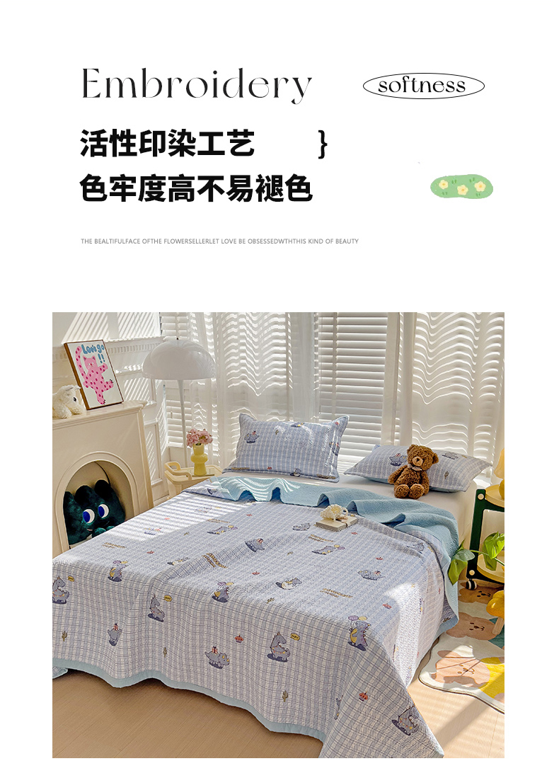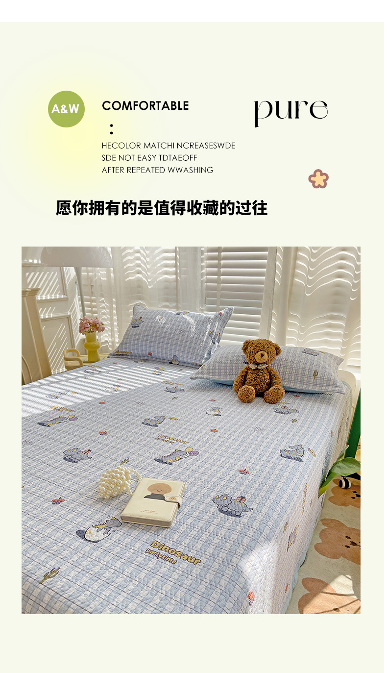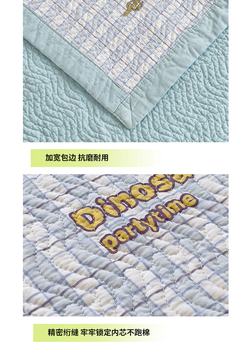 胜权家纺 2024新款A类60支双面全棉高温水洗夹棉床盖三件套 可爱恐龙