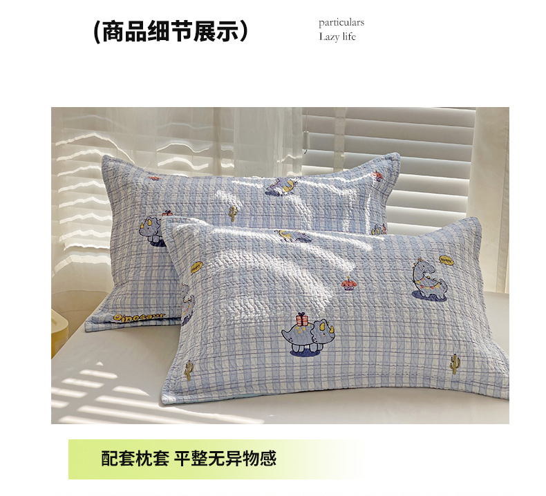 商品名称:胜权家纺 2024新款A类60支双面全棉高温水洗夹棉床盖三件套 可爱恐龙