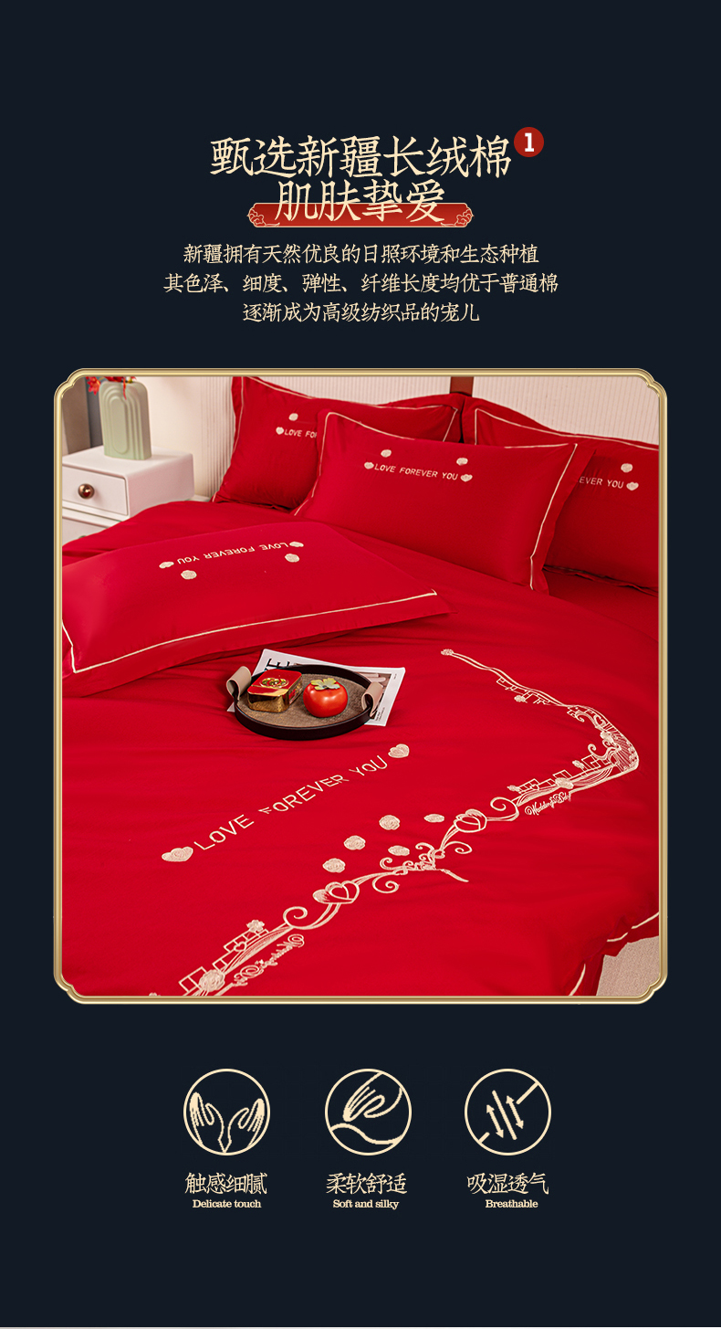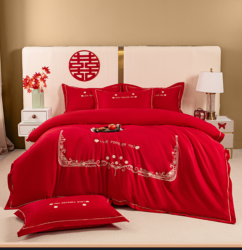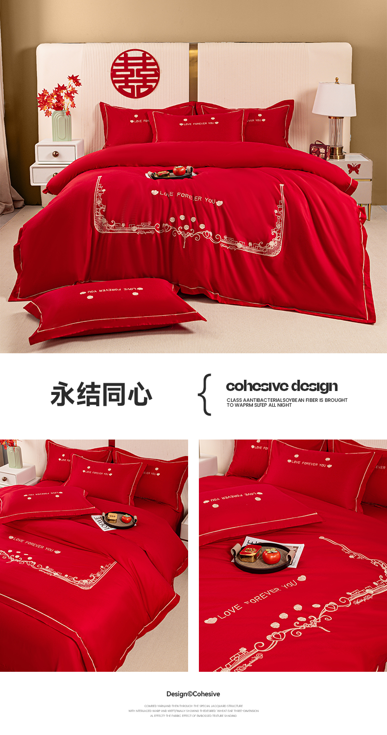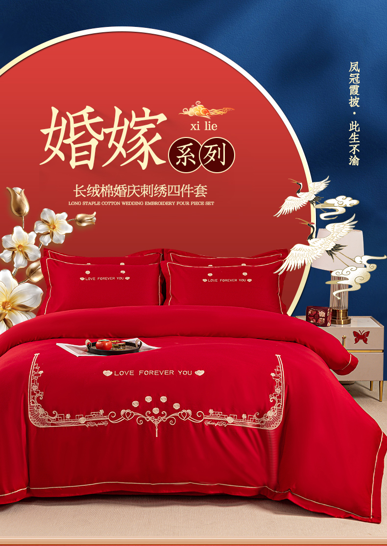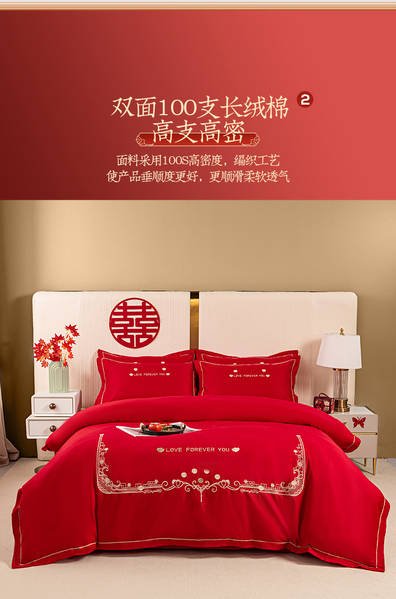 (总)银石 2024新款60新疆长绒棉大红婚庆绣花四件套,倾心一片,山河见证,心心相印,永结同心,浪漫时刻,吉祥如意,龙凤报喜