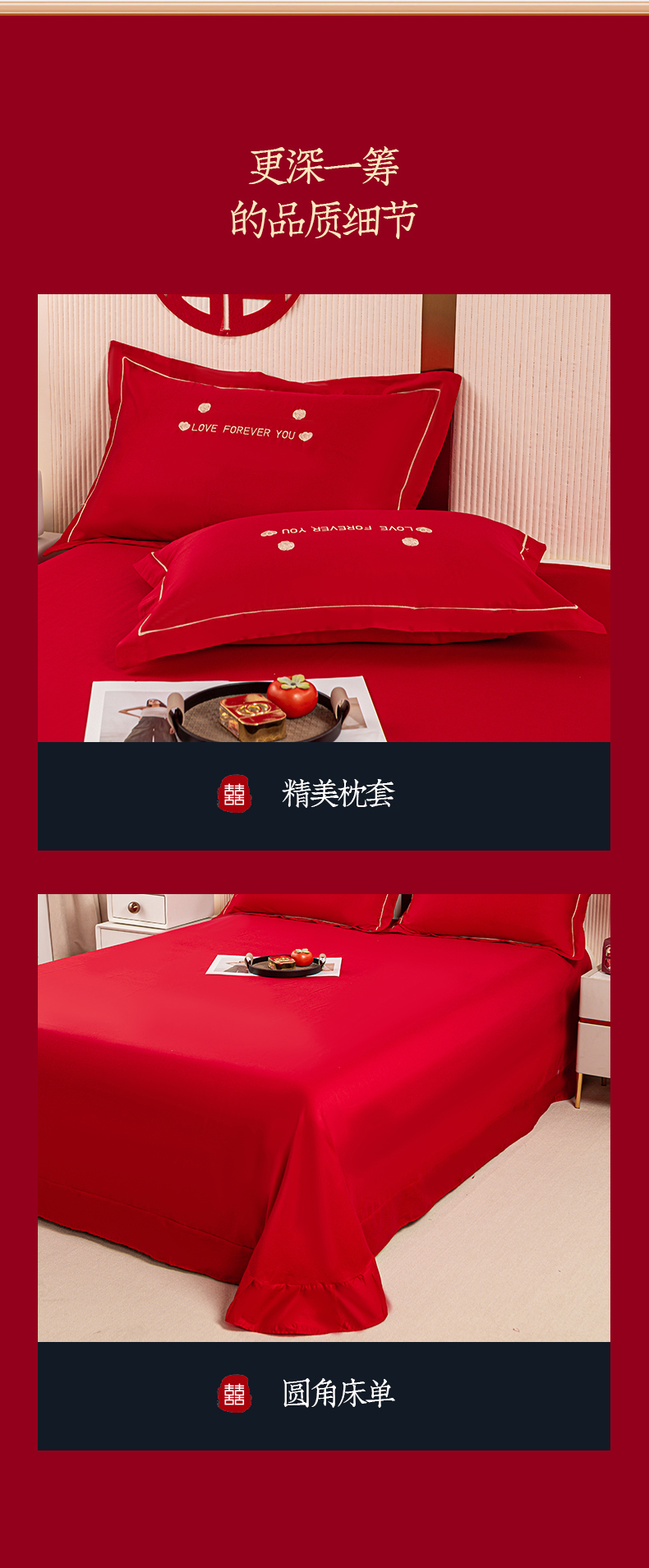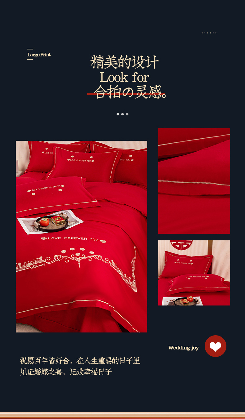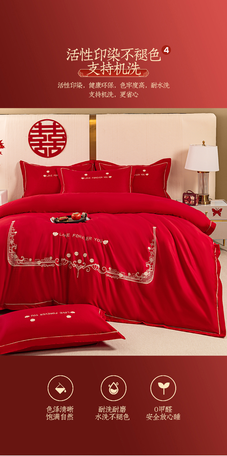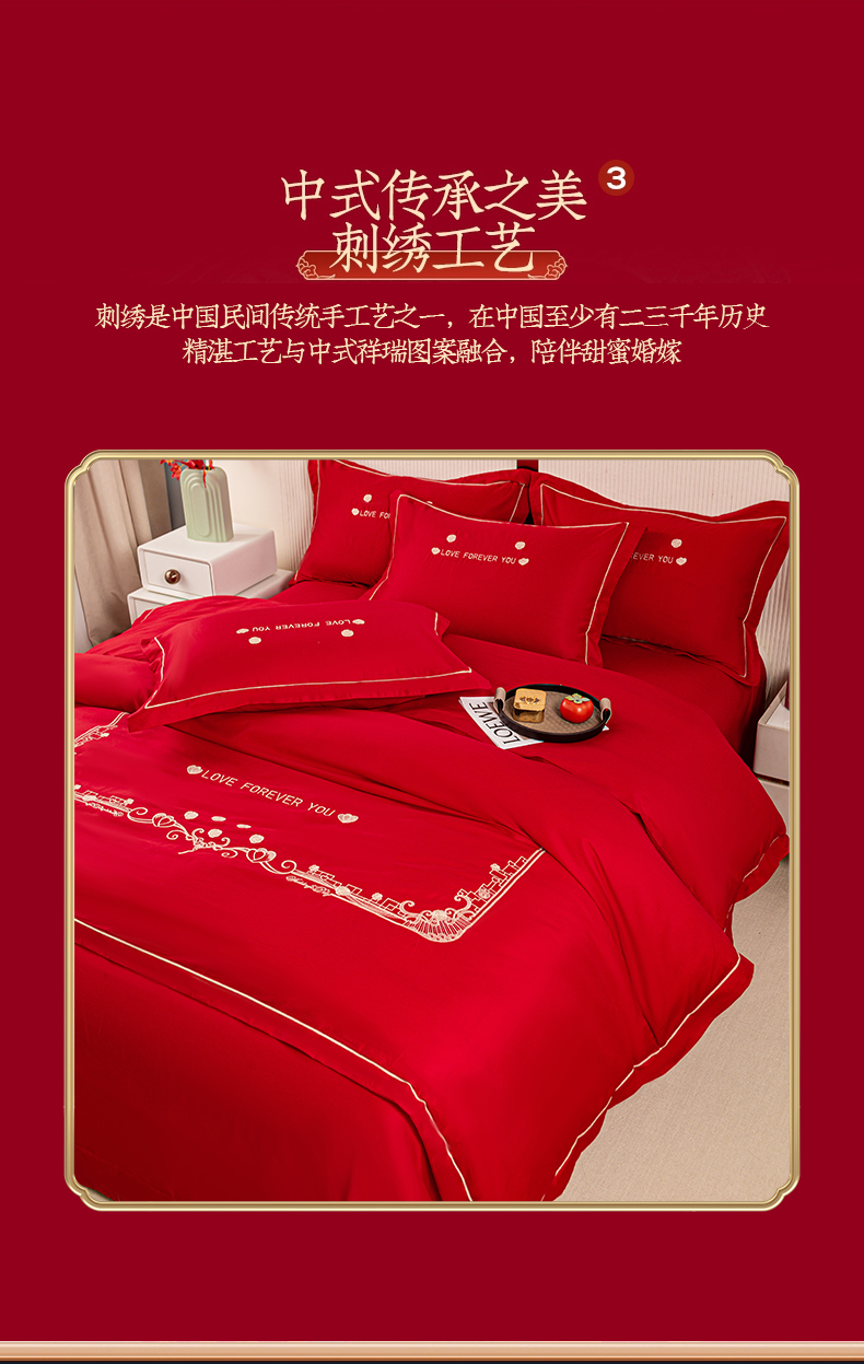 (总)银石 2024新款60新疆长绒棉大红婚庆绣花四件套,倾心一片,山河见证,心心相印,永结同心,浪漫时刻,吉祥如意,龙凤报喜