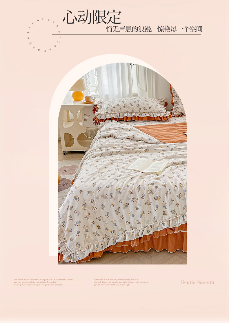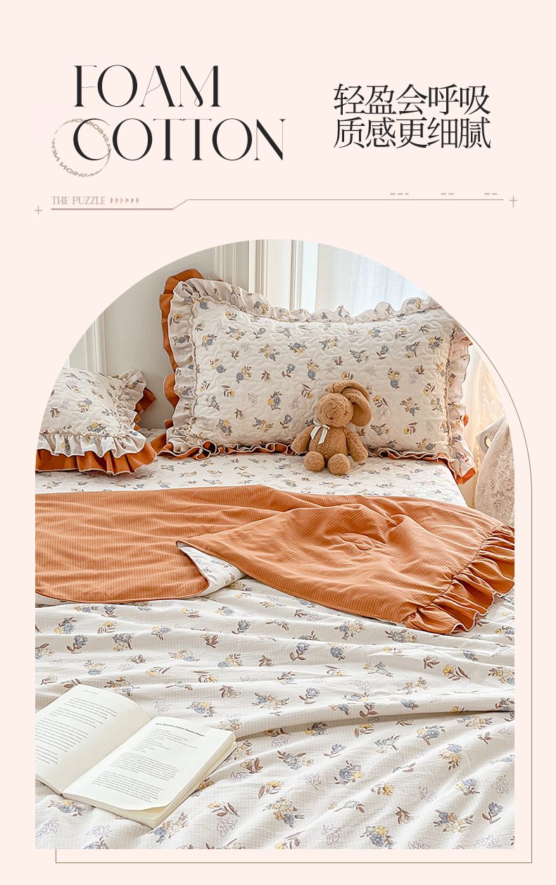 商品名称:恒爱家纺 2024新款韩版泡泡棉床盖系列四件套 木棉花