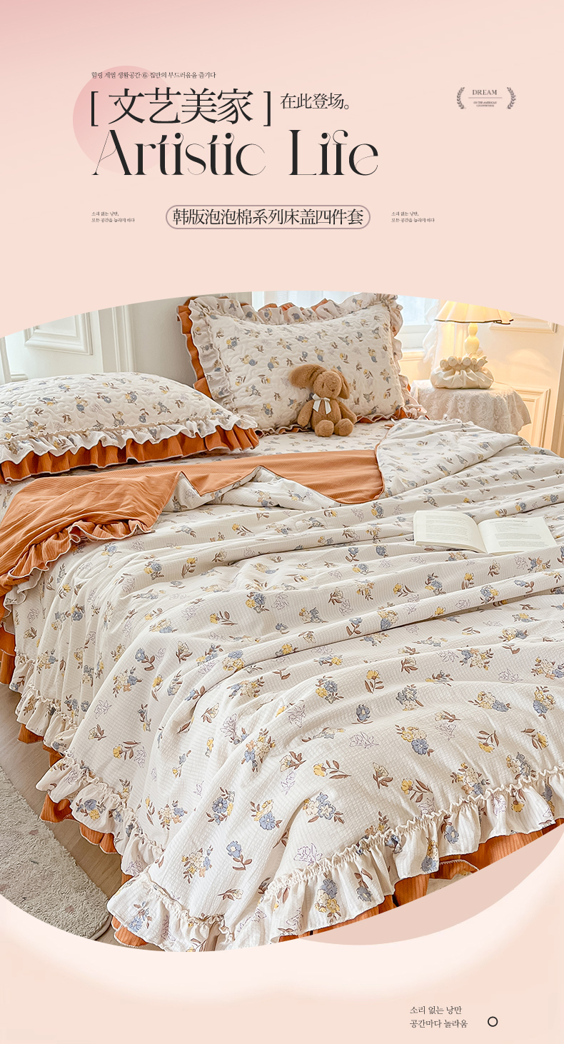 恒爱家纺 2024新款韩版泡泡棉床盖系列四件套 木棉花