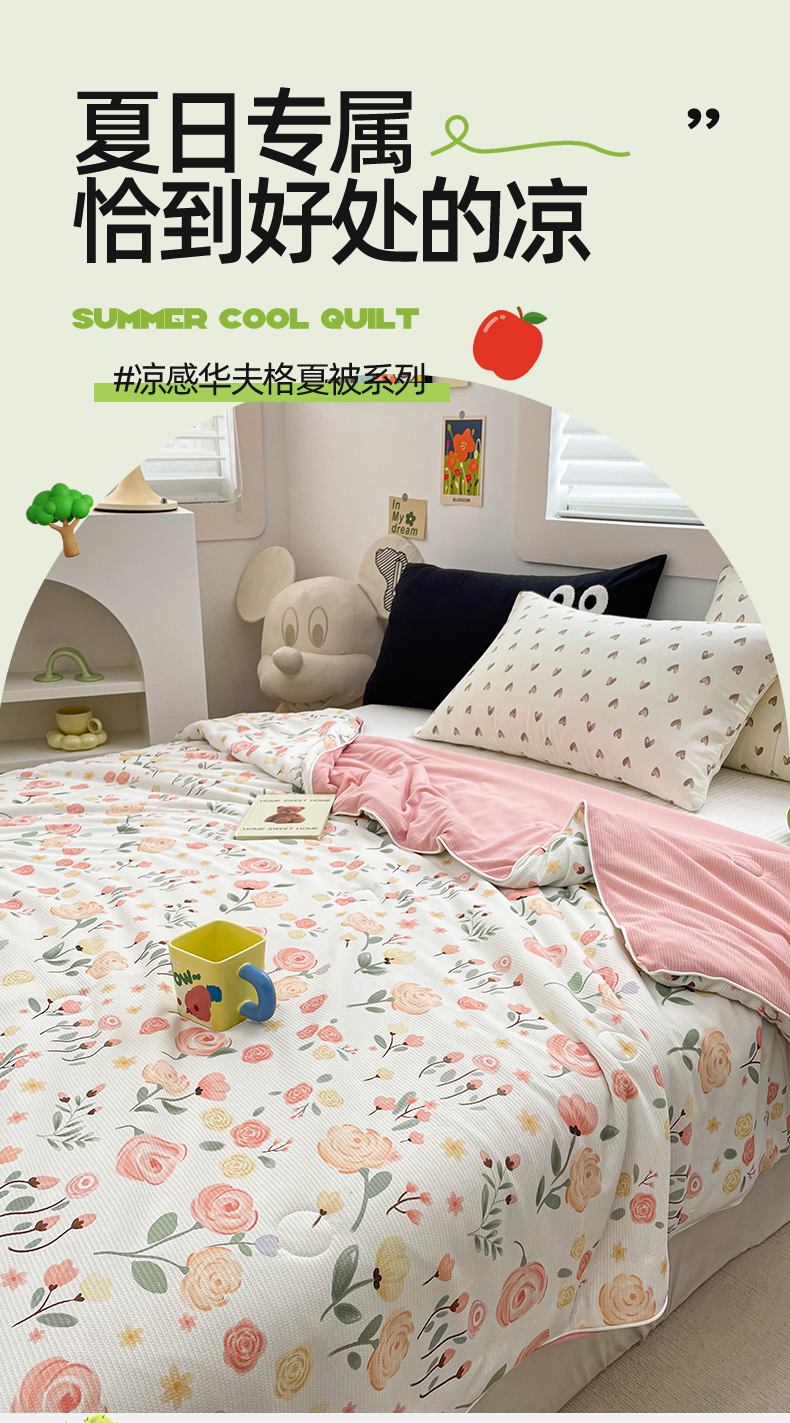 恒爱家纺 2024新款AB版清新吸湿透气华夫格凉感夏被 芬芳满园