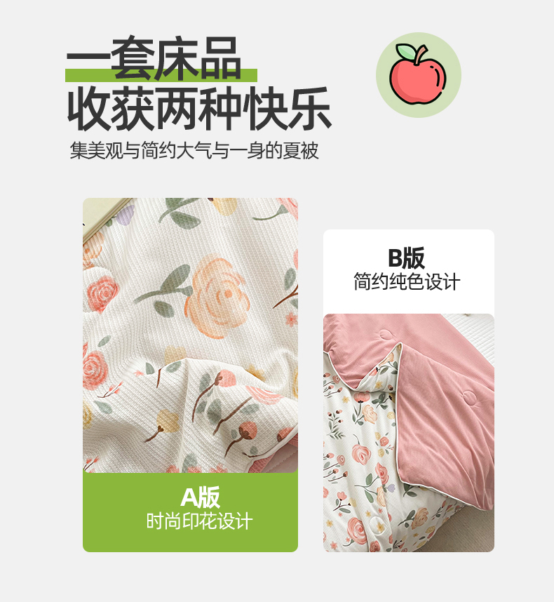 商品名称:恒爱家纺 2024新款AB版清新吸湿透气华夫格凉感夏被 芬芳满园
