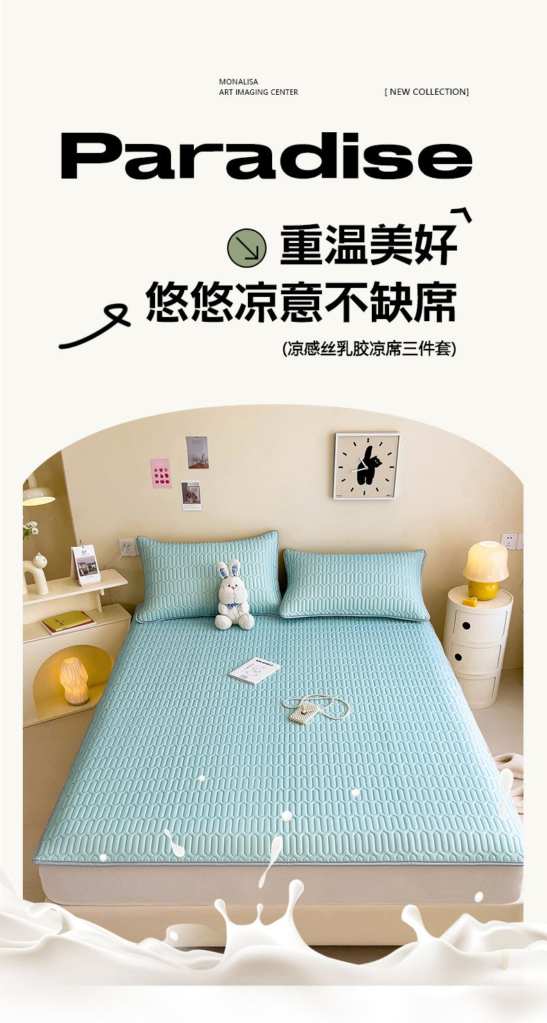 商品名称:希廷顿 2024新款加厚凉感丝乳胶凉席三件套 天蓝色