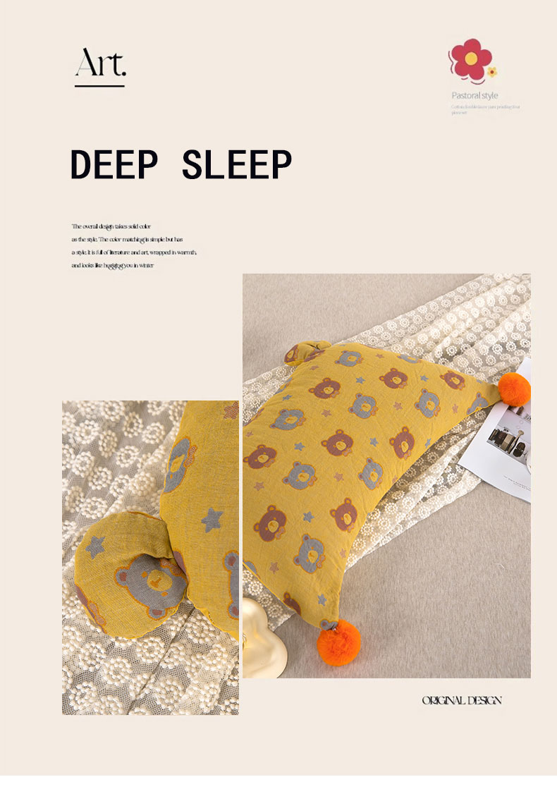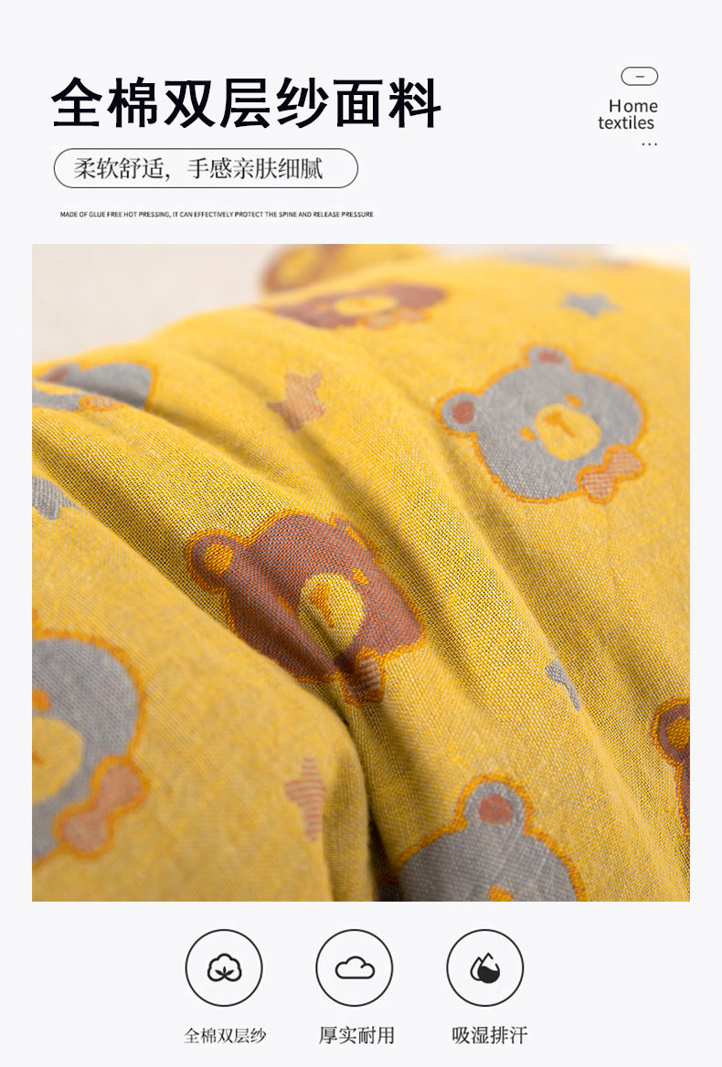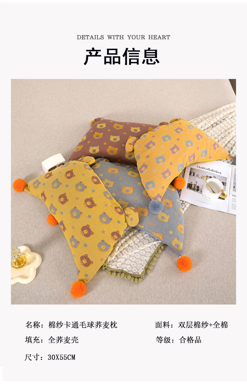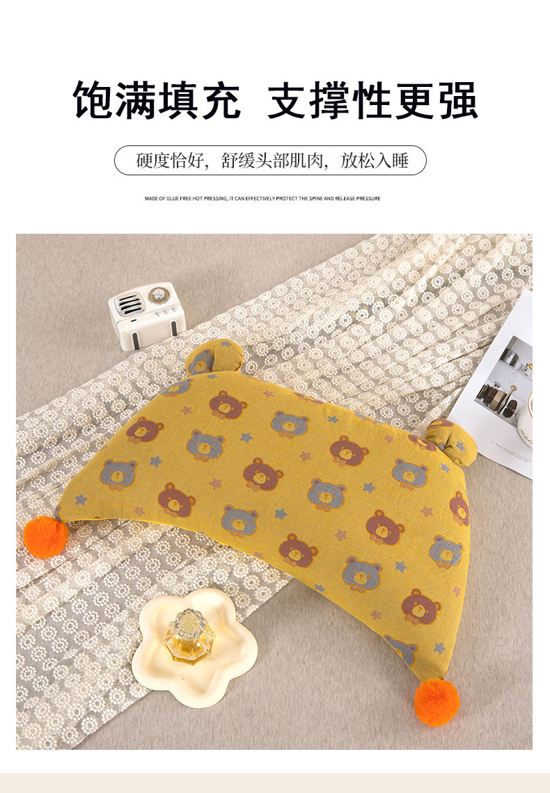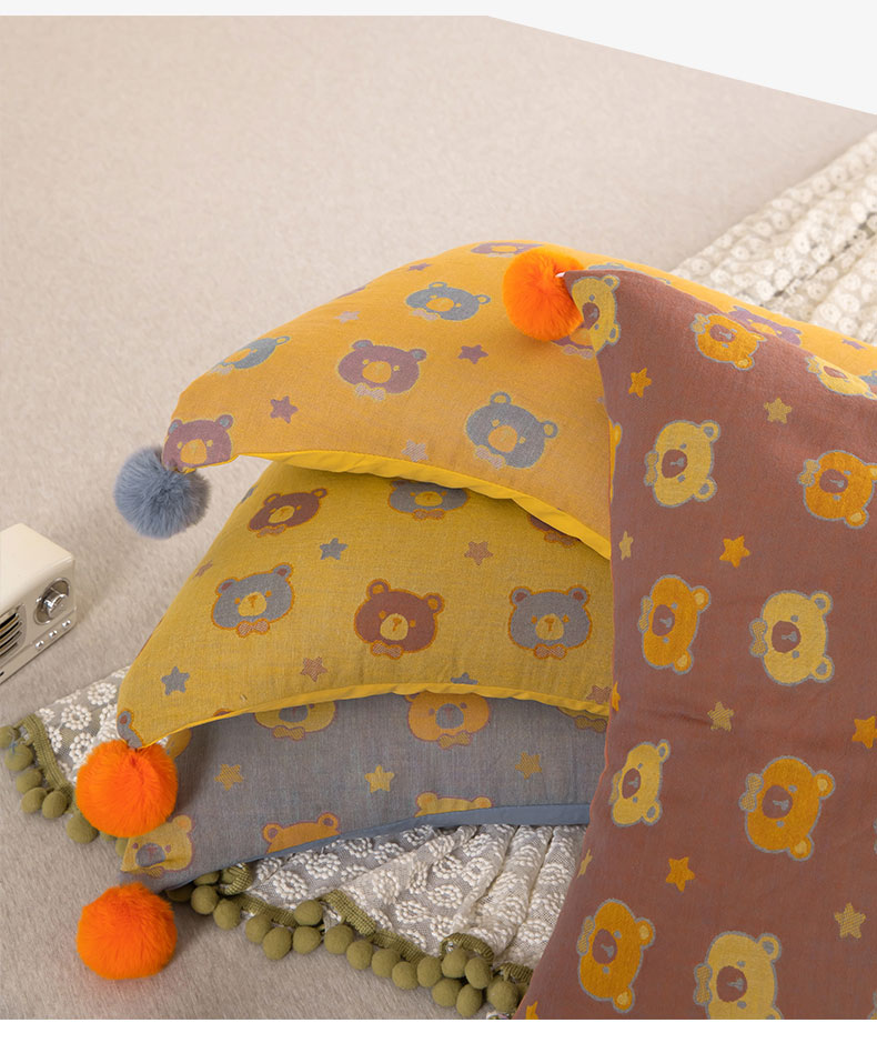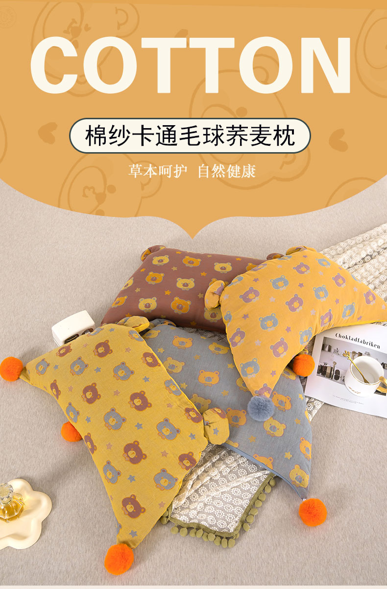 当前位置: 91家纺网 > 商品网购 > 枕头/枕芯/保健枕/颈椎枕 > 普通枕芯 > 2025新款直播爆款棉纱卡通毛球荞麦枕 卡通棉纱荞麦黄色