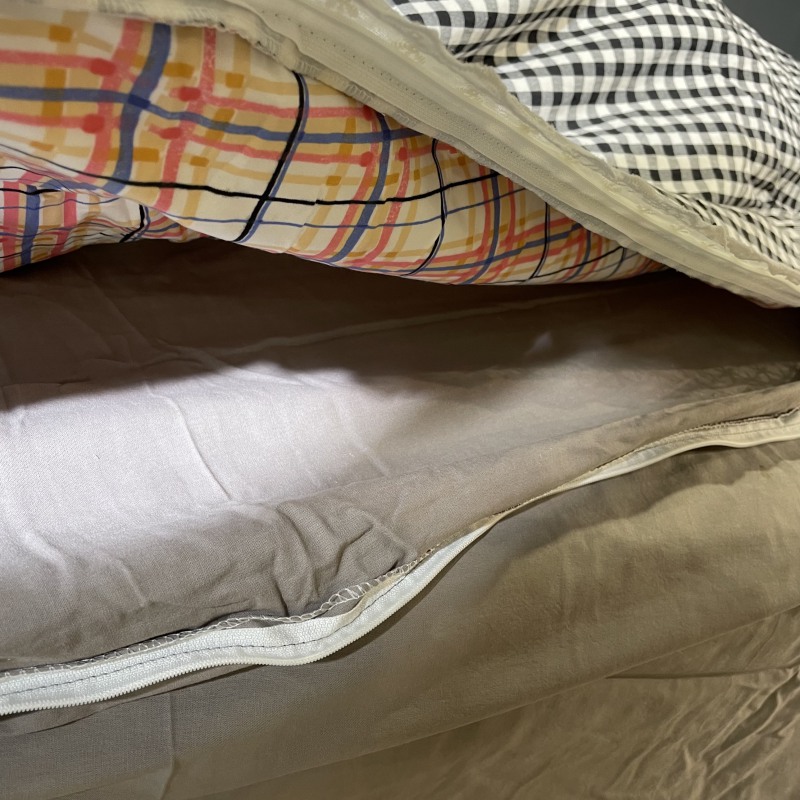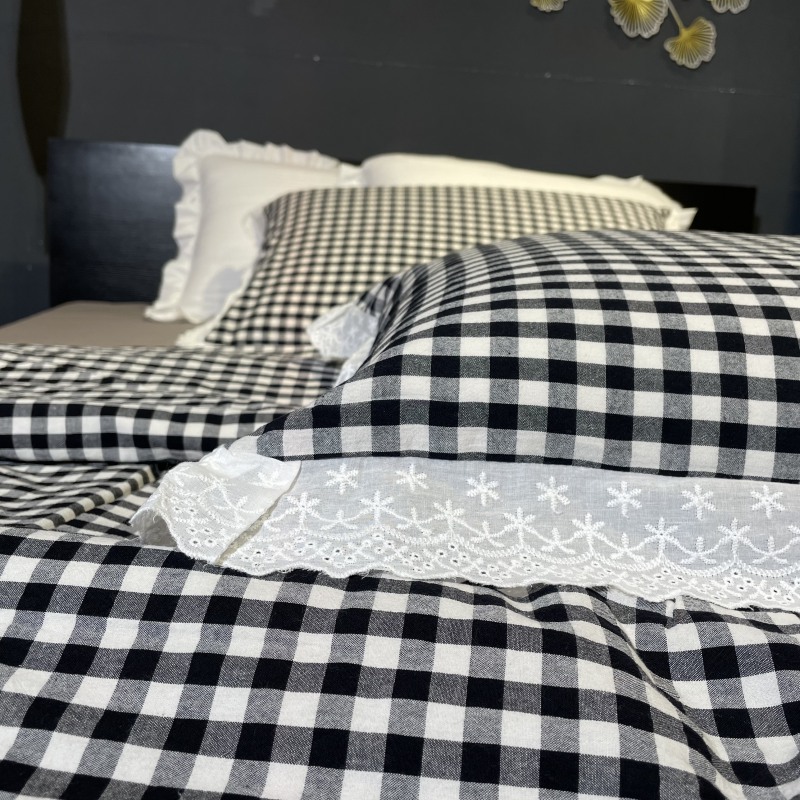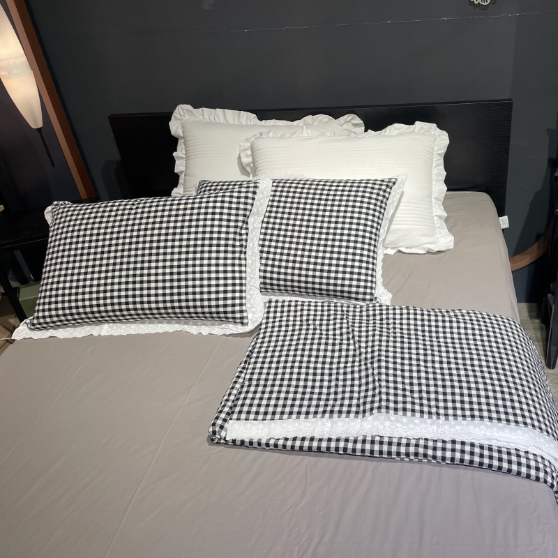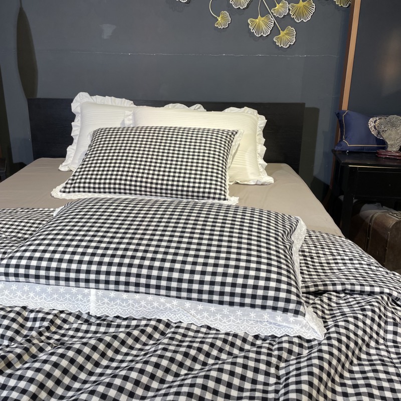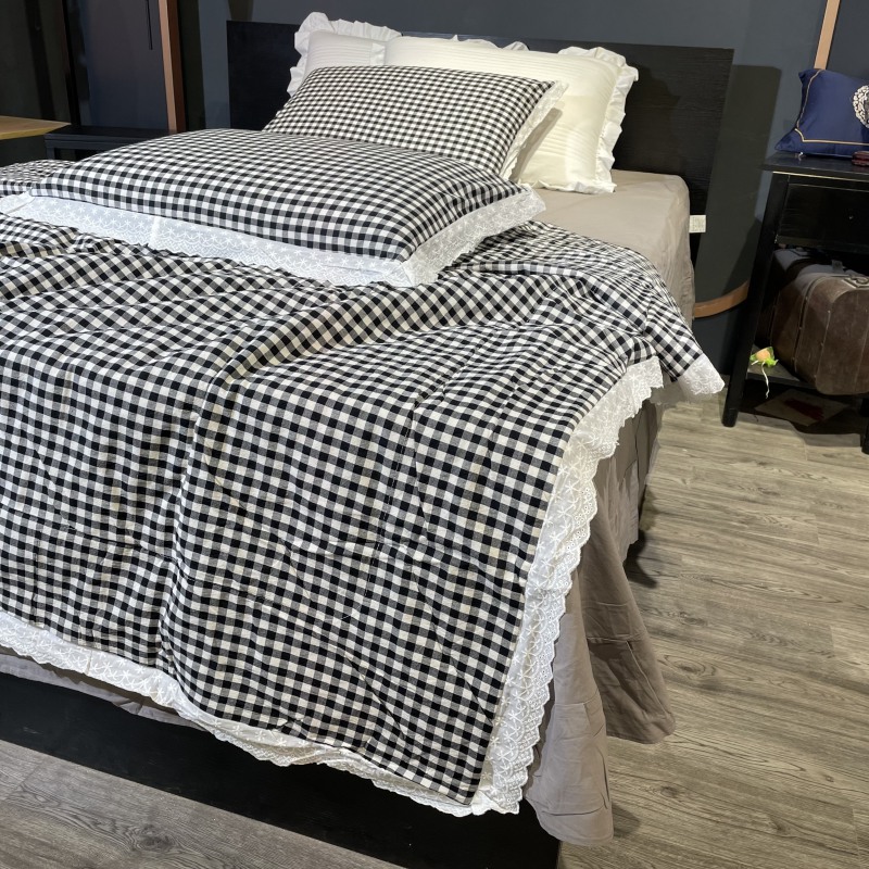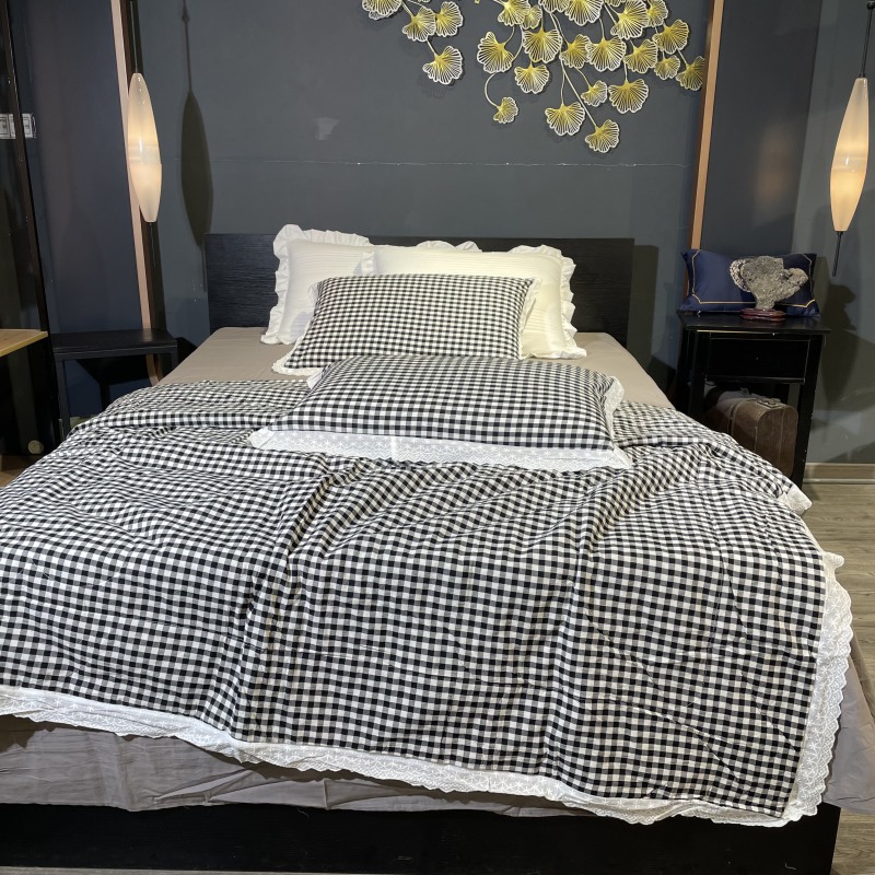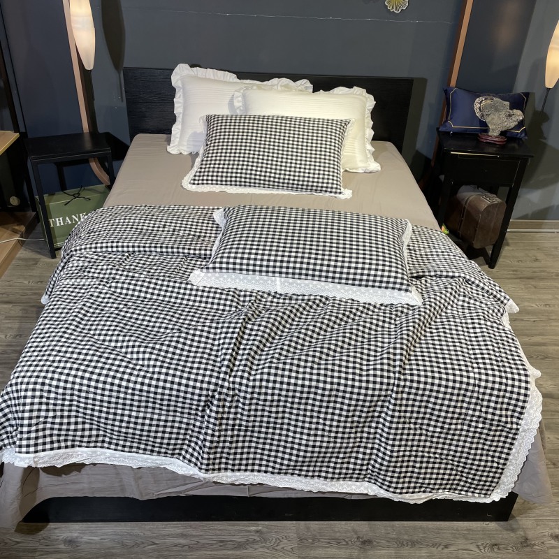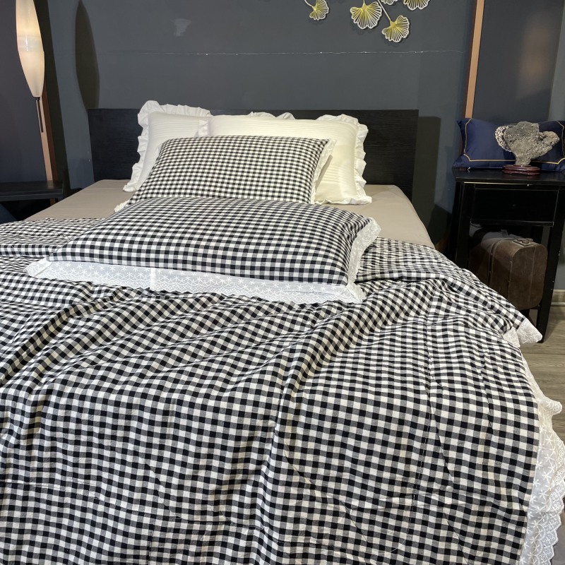 玖玖爱家纺 2024新款全棉水洗棉被套式多功能夏被四件套 黑白格