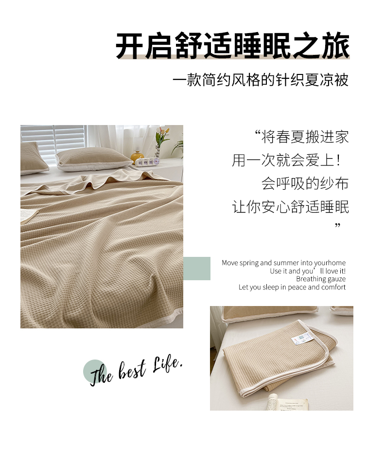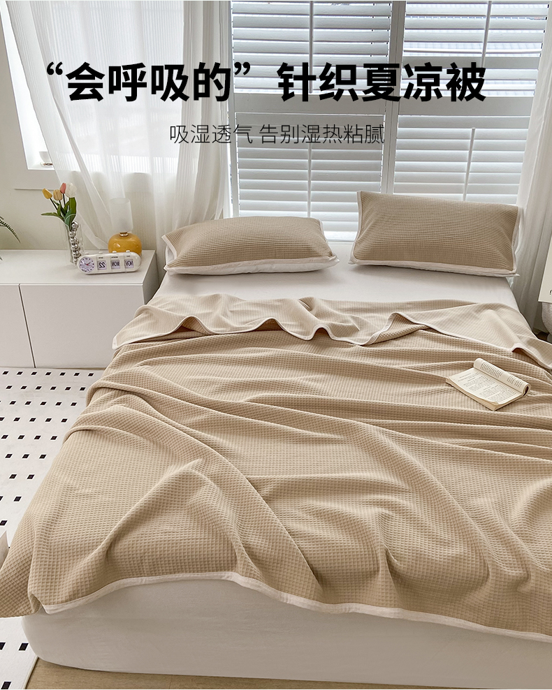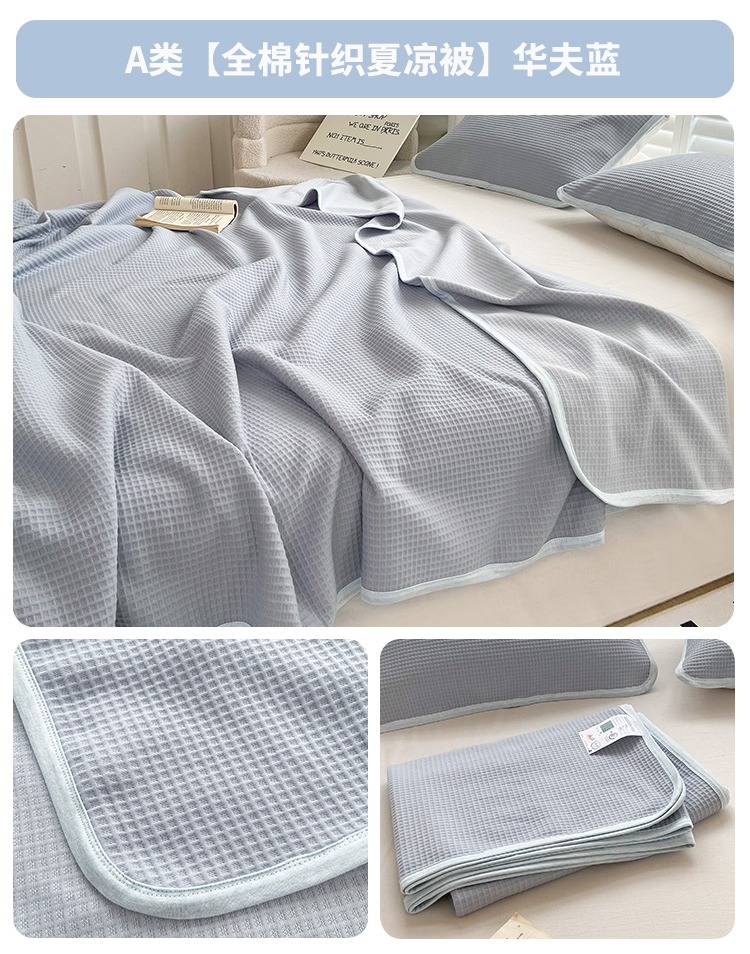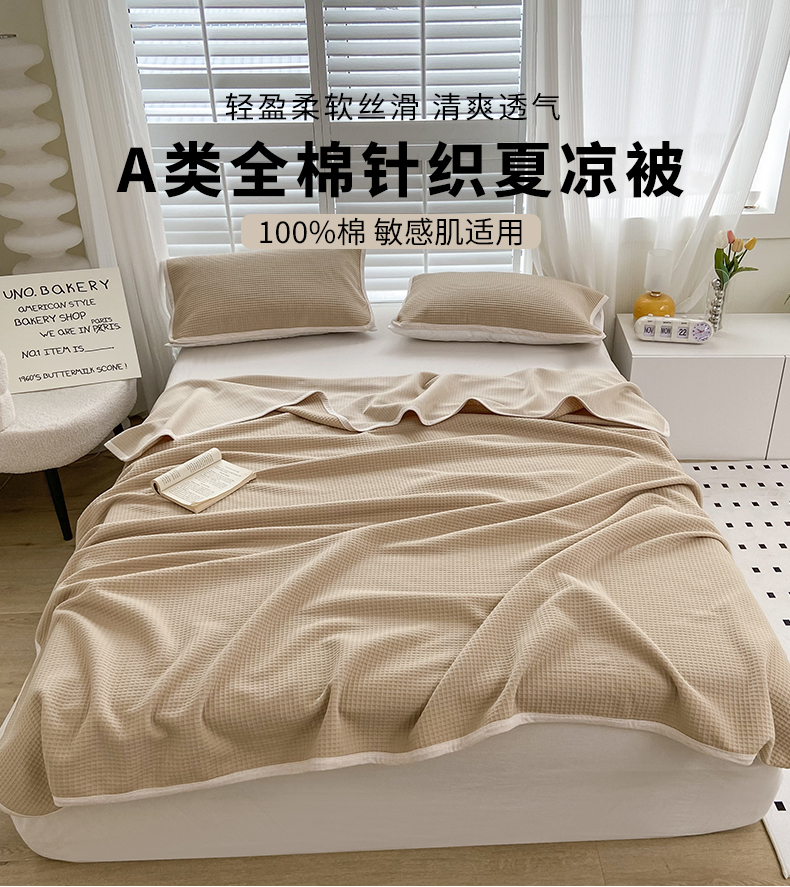(总)来菲毛毯 2025新款全棉A类针织盖毯夏凉被,粉色,灰色,卡其,蓝灰,奶白