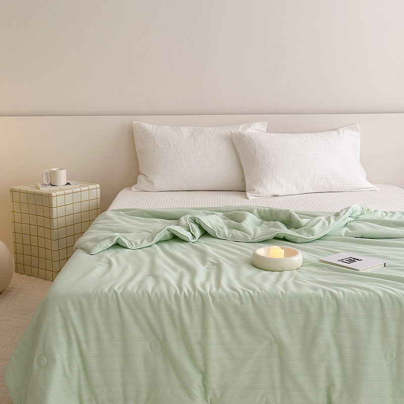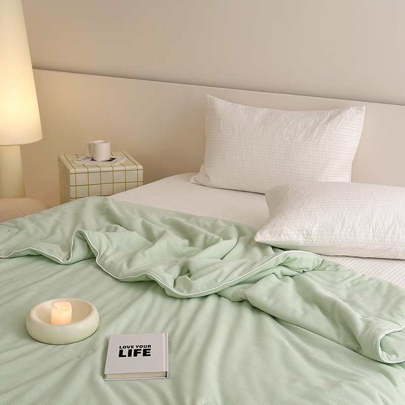 (总)珺柔家纺 2023新款针织华夫格夏被,白色,粉玉,金色,浅咖,水绿,雾霾蓝