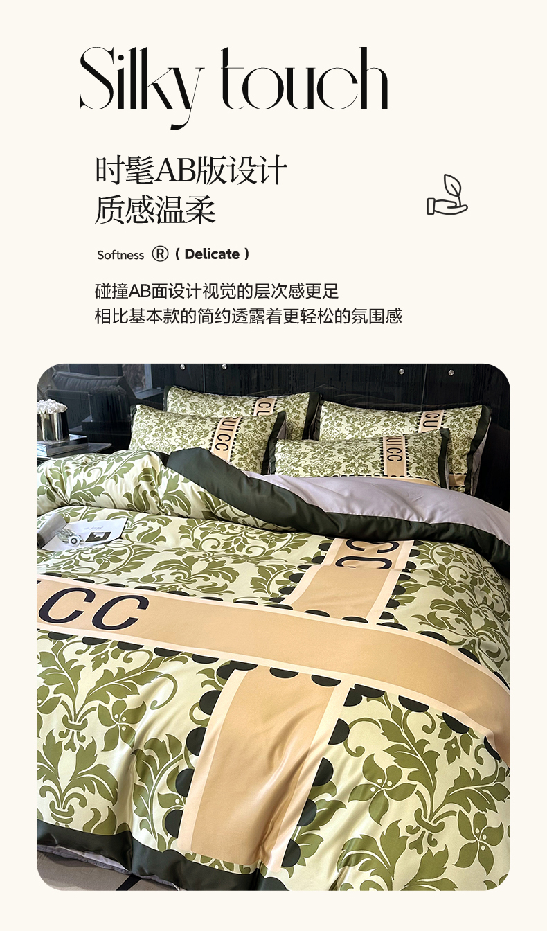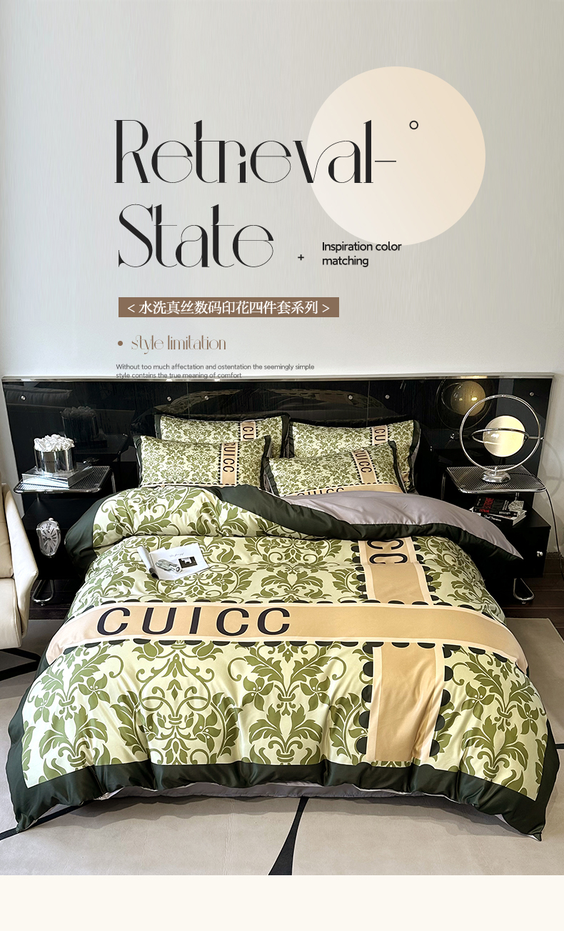 色鬼布艺 2024新款水洗真丝轻奢系列数码印花四件套 古里