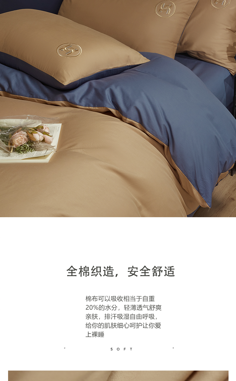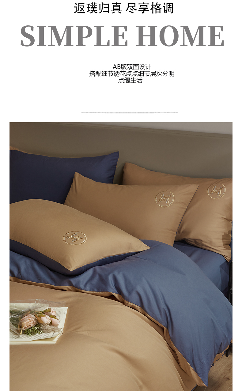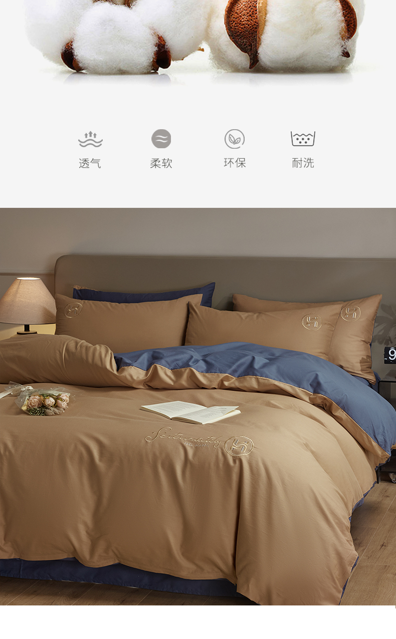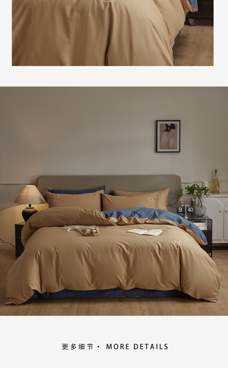 商品名称:梵克保罗 2024新款全棉轻奢纯色双拼刺绣四件套 深咖兰