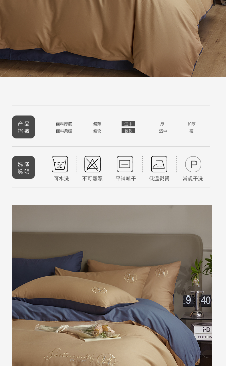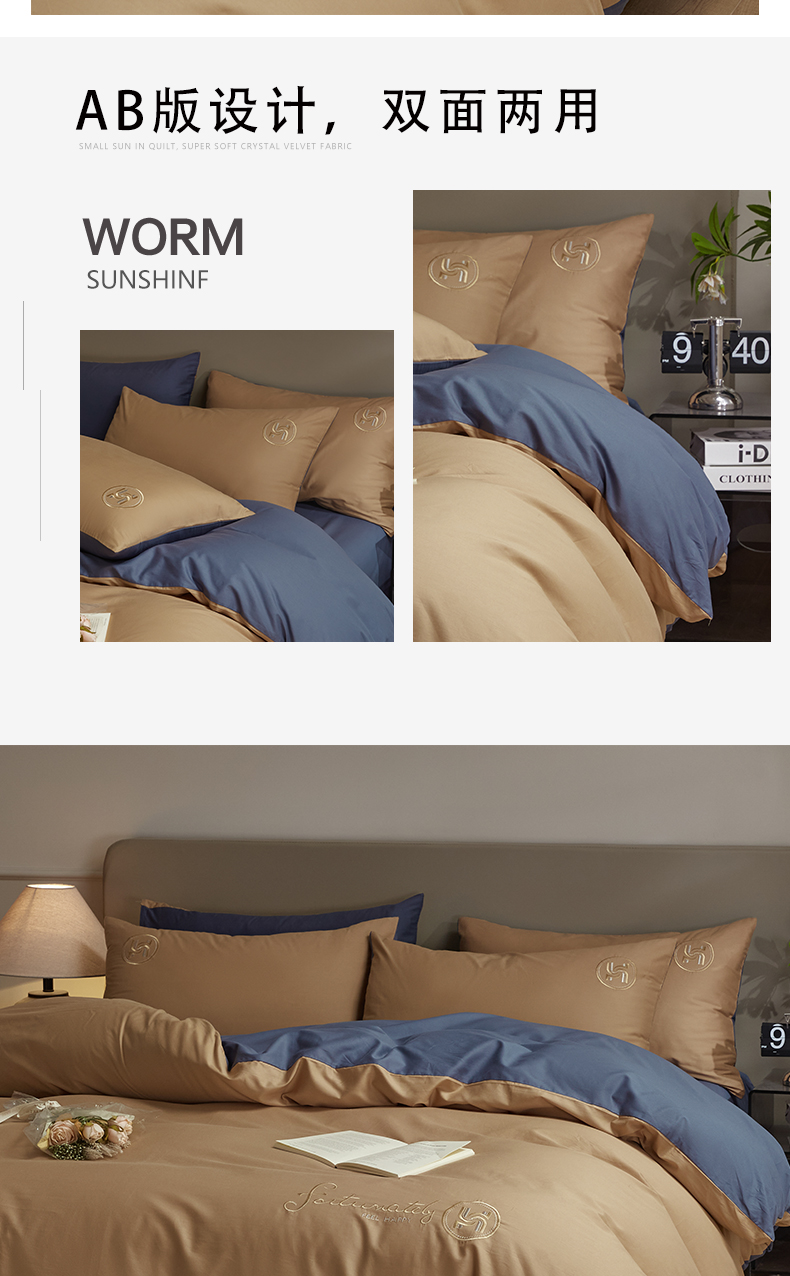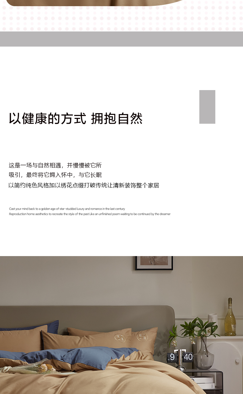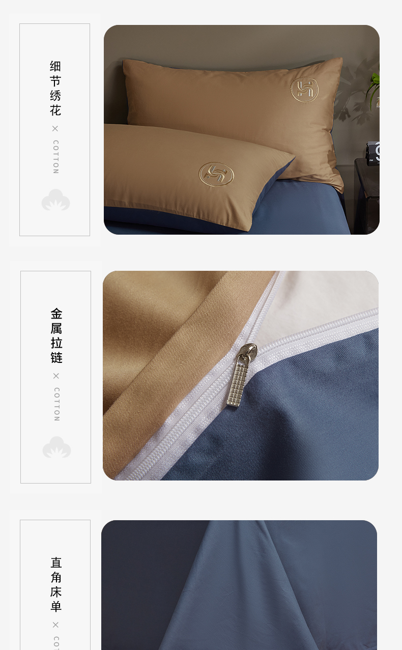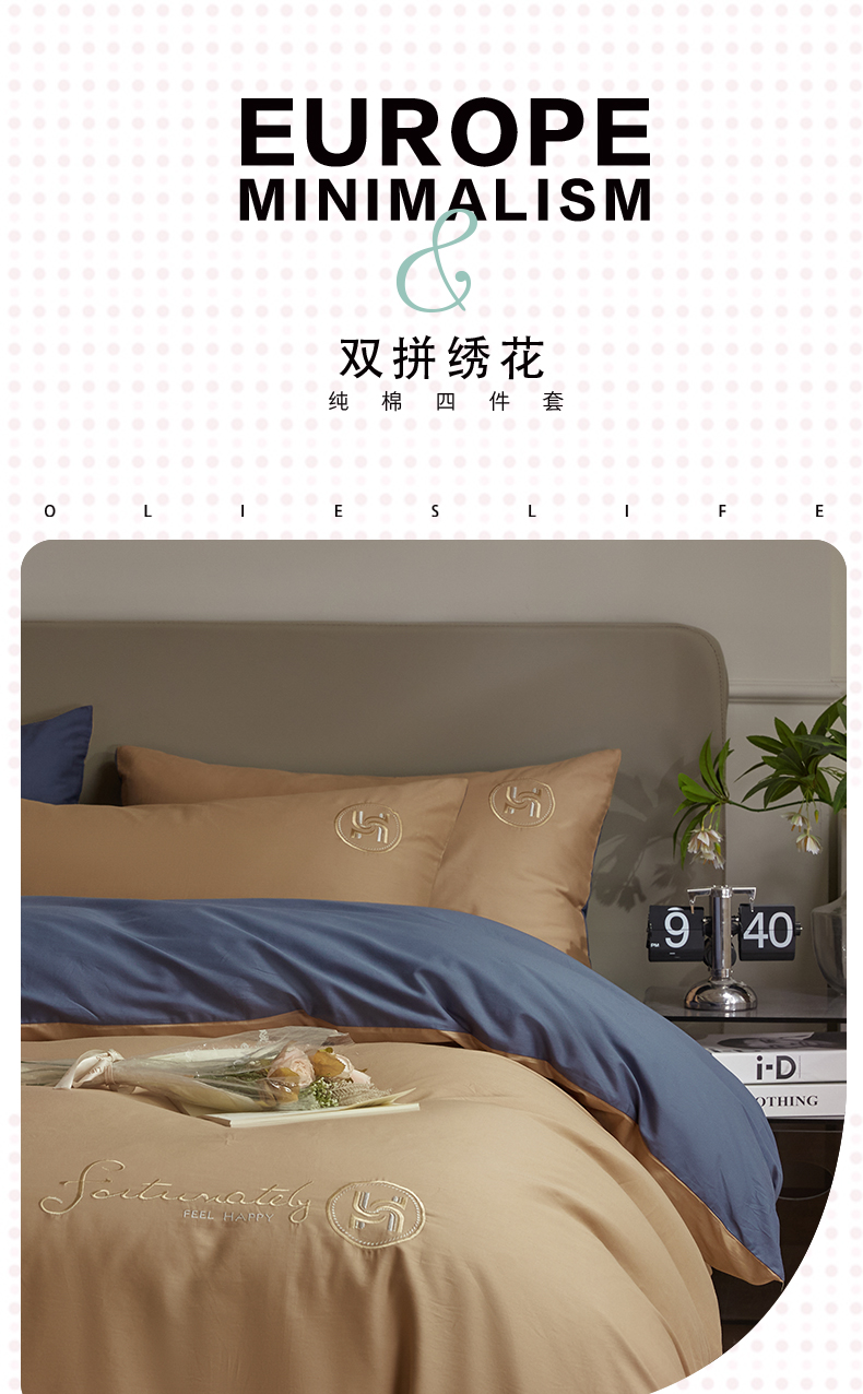 商品名称:梵克保罗 2024新款全棉轻奢纯色双拼刺绣四件套 深咖兰