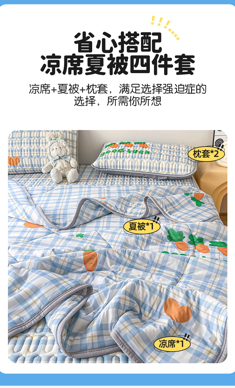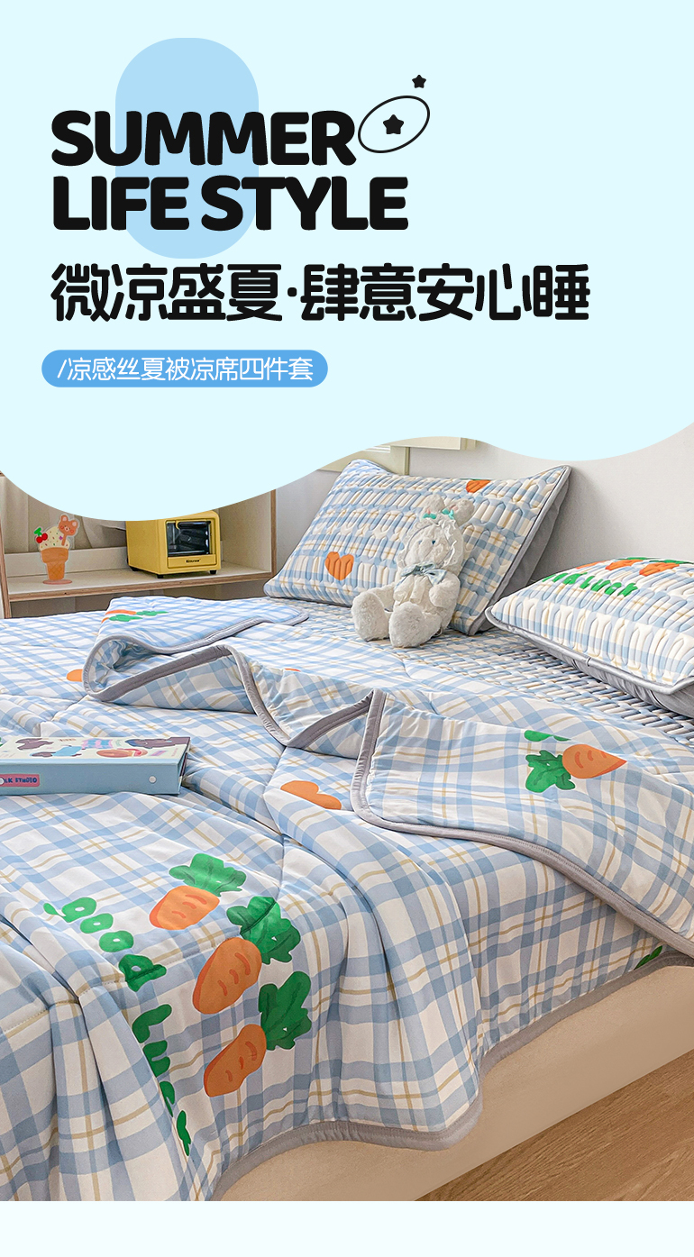 当前位置: 91家纺网 > 商品网购 > 床品套件 > 四件套 > 夏被四件套 > 布卢姆床垫 2025新款A类凉感丝数码印花夏被凉席四件套 拔萝卜