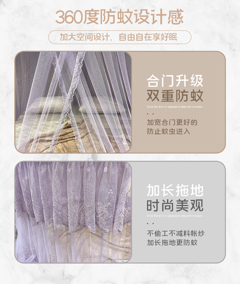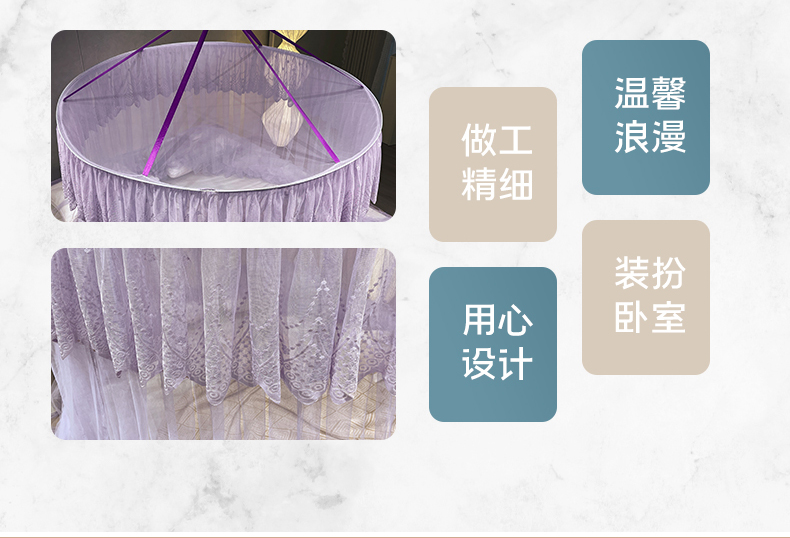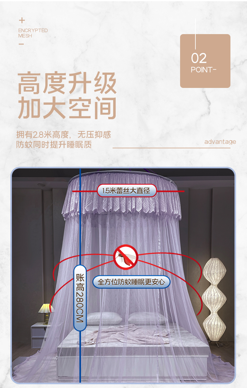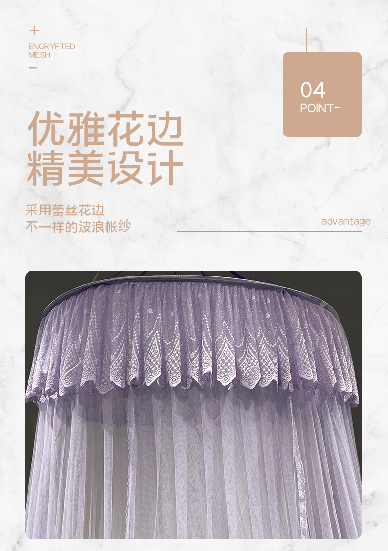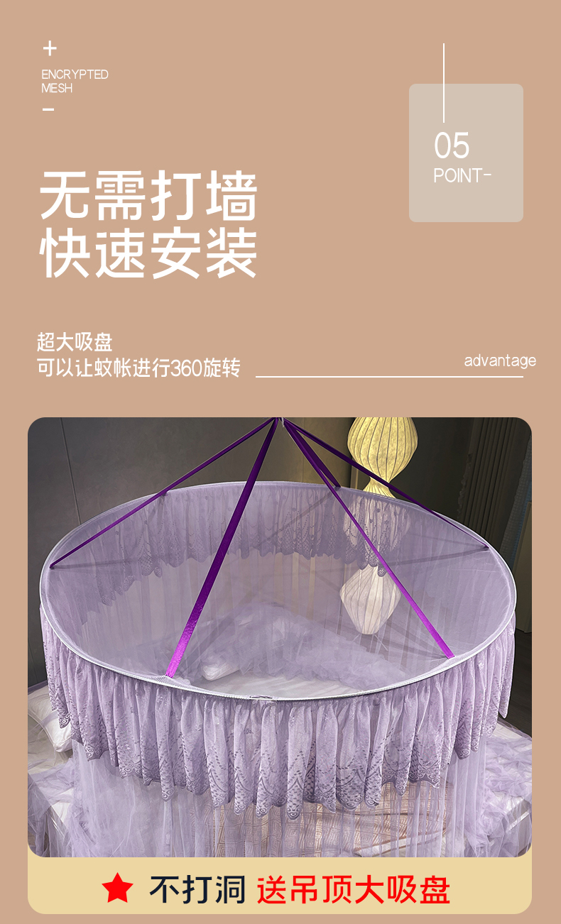 夏彩 2024新款加高加大加密1.5米直径蕾丝大圆顶88551 88551-梦幻紫