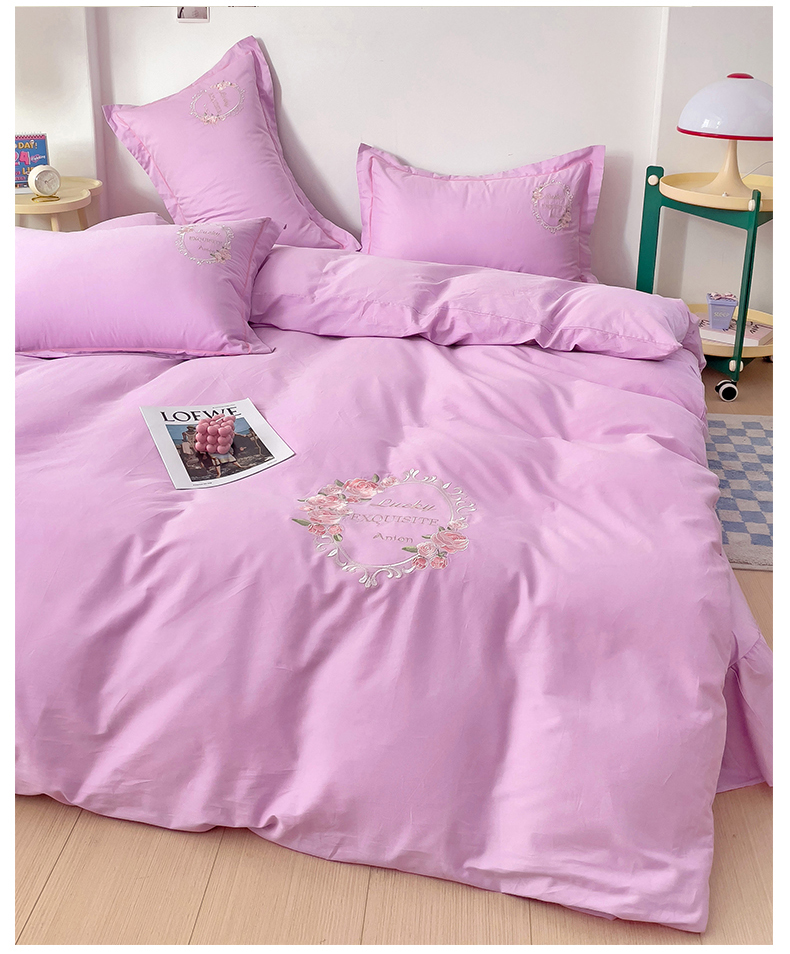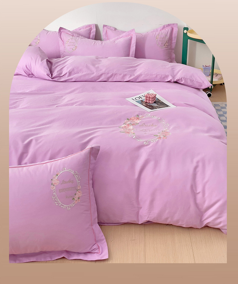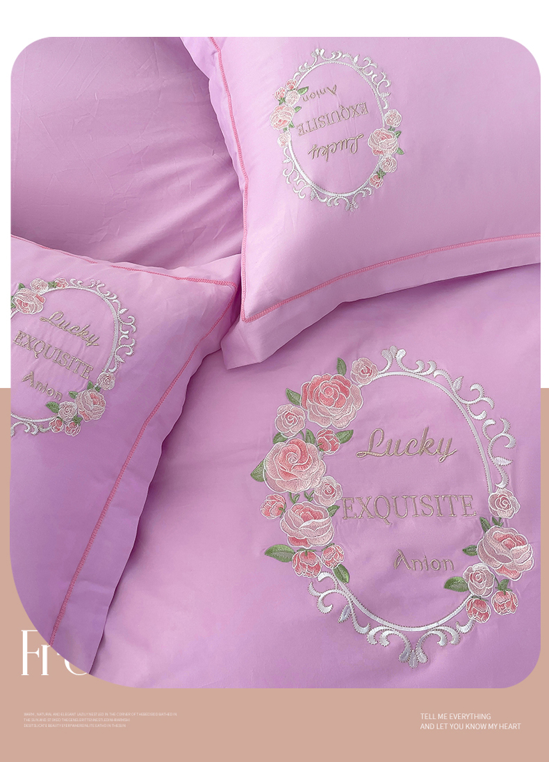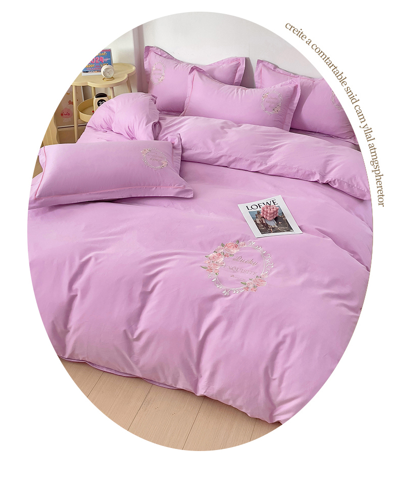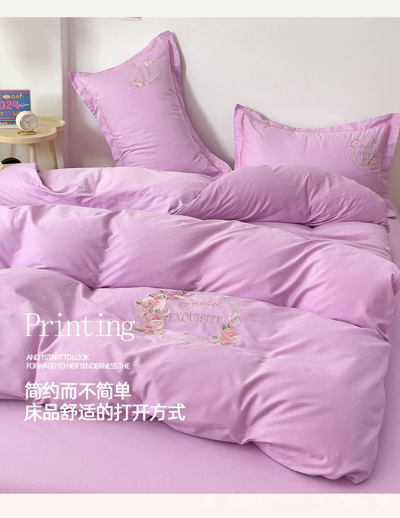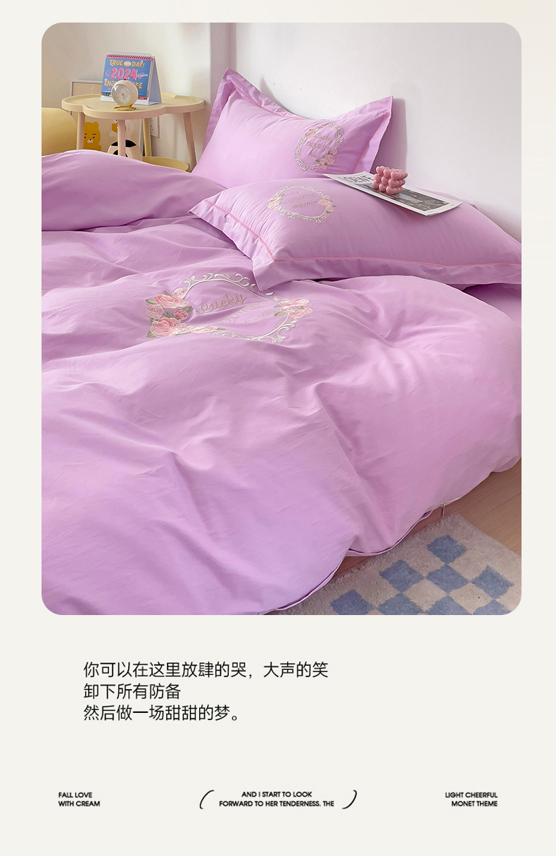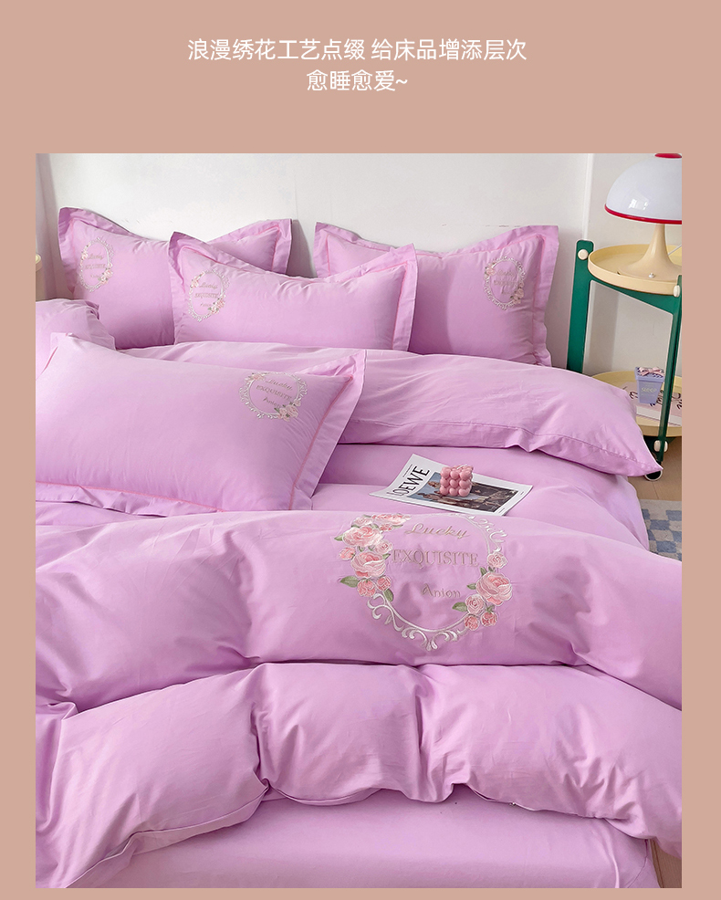 (总)云锦2023秋冬新品全棉磨毛绣花四件套缦芯,缦芯粉,缦芯灰,缦芯橘,缦芯蓝,缦芯紫