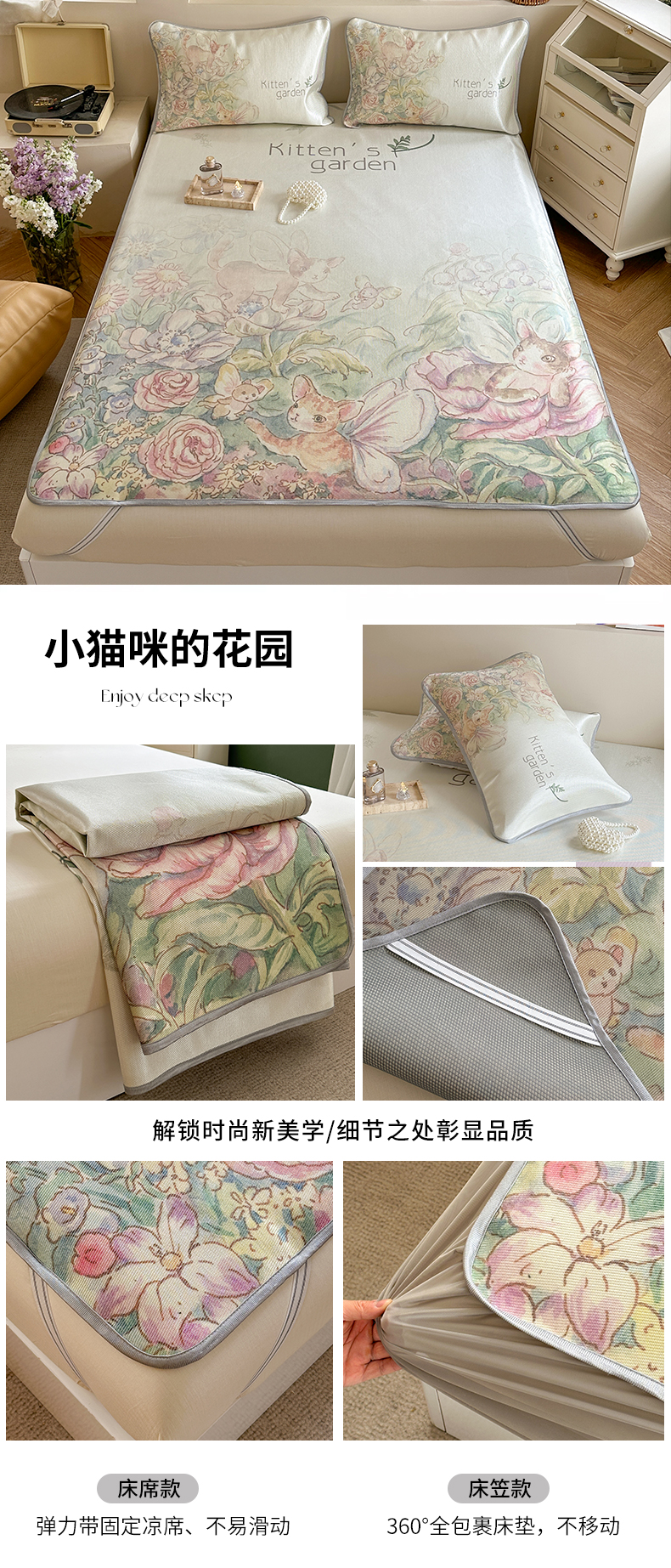 当前位置: 91家纺网 > 商品网购 > 床上用品 > 凉席 > 冰丝席 > 萝莉家纺 2024新款大版冰丝凉席床席床笠款 小猫咪的花园-平席款