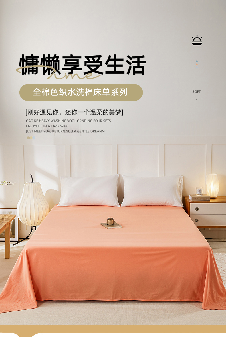 商品名称:凡客 2024新款全棉色织水洗棉床单 漫彩—橘