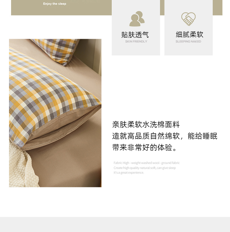 (总)凡客家居 2024新款全棉色织水洗棉枕套学生宿舍