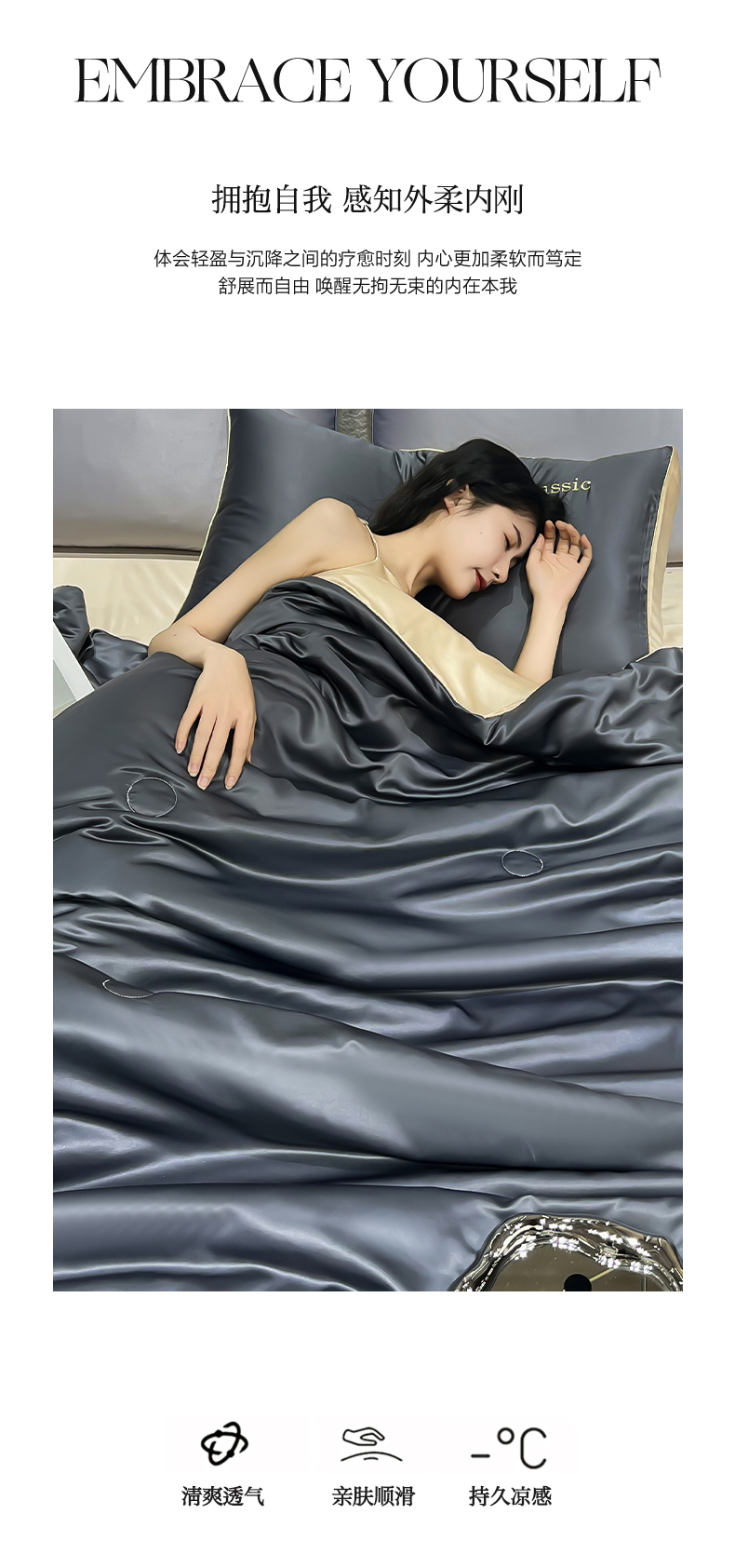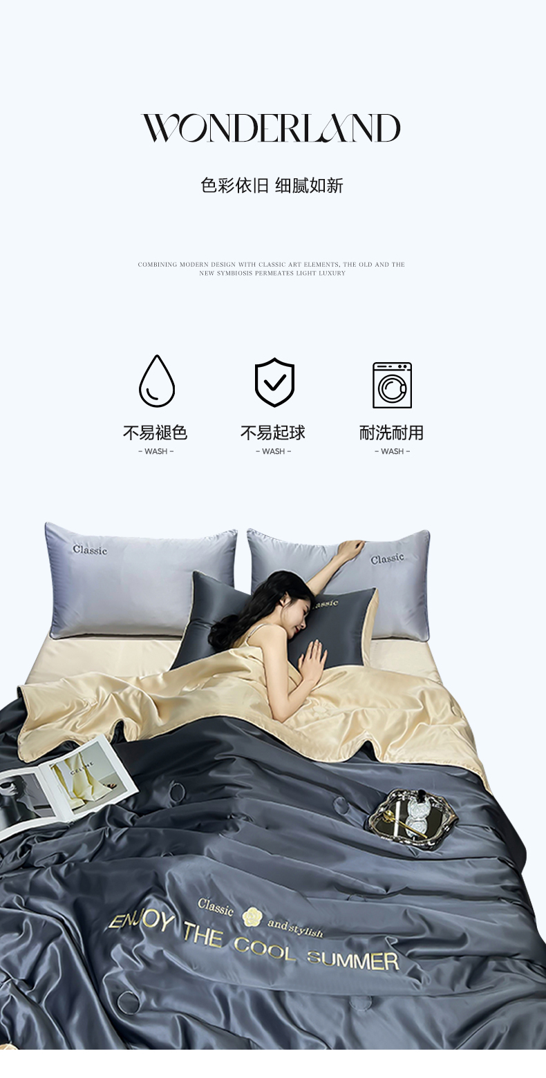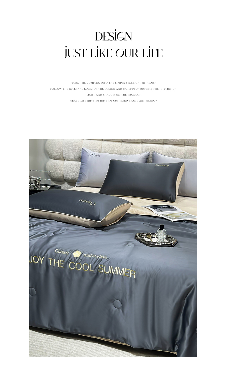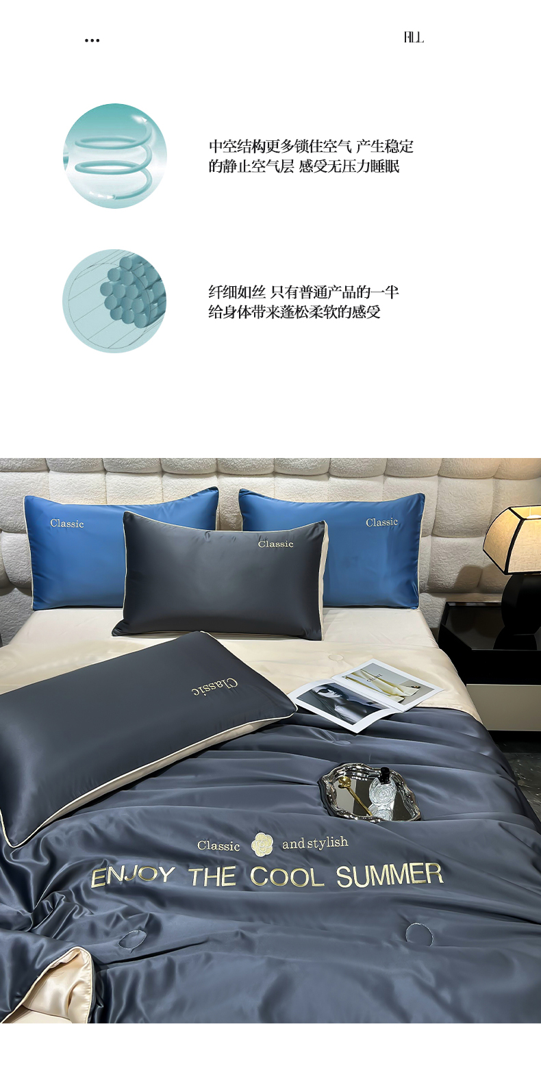 • 91家纺网 家纺一手货源 找家纺 梦镜家纺 2025新款凉感丝刺绣系列夏被 高级灰+香槟
