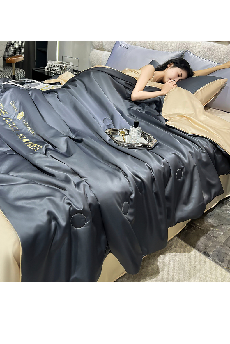 梦镜家纺 2025新款凉感丝刺绣系列夏被 高级灰+香槟