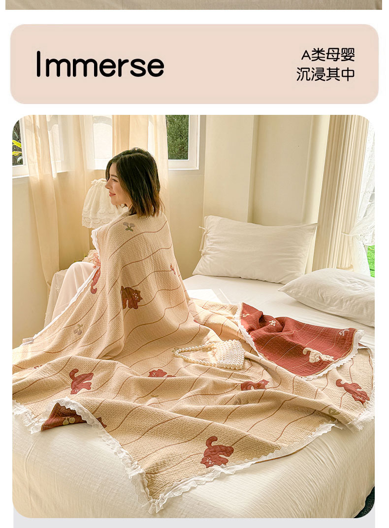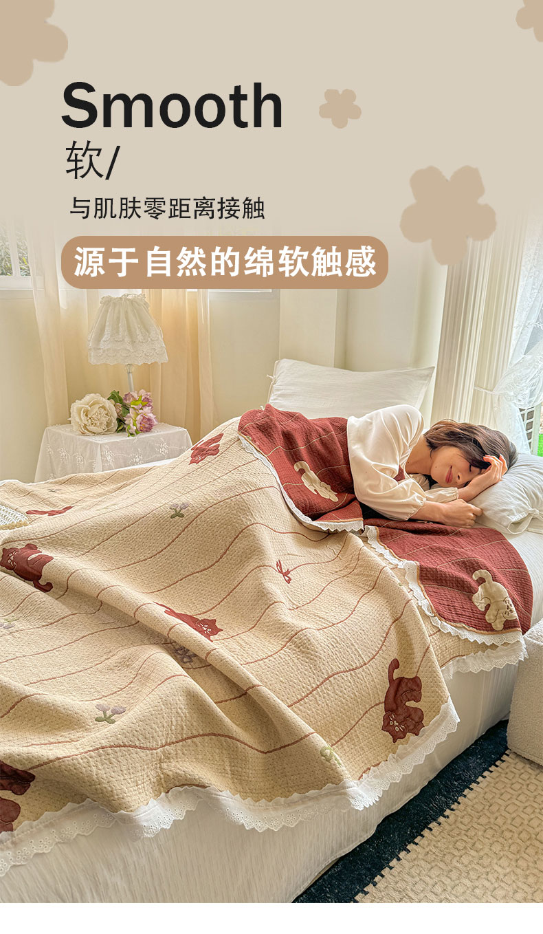 商品名称:麻依 2024新款四层纱布天丝盖毯毛巾被夏凉毯空调毯子 顽皮猫