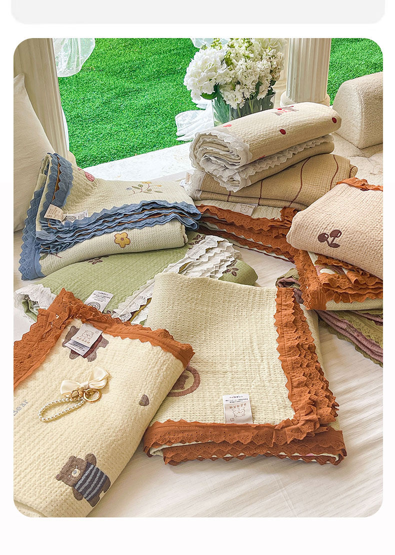 (总)麻依 2025新款韩国清新全棉纱布床盖三件套,憨憨熊,彩色南瓜,车厘子,两颗草莓,奶盖KT,奶油波点-灰,奶油彩点,水蓝KT,水墨花,丝带,桃心-米白,小猫鱼