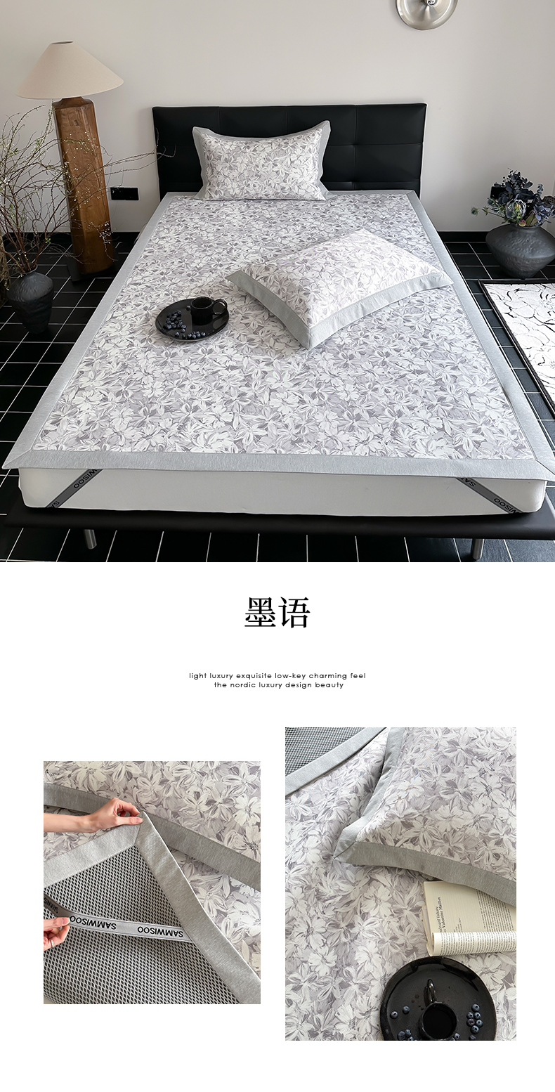 商品名称:三味舒屋 2026新款凉感抗菌防螨印花冰丝养生席手绘系列【花卉】床席款 墨语