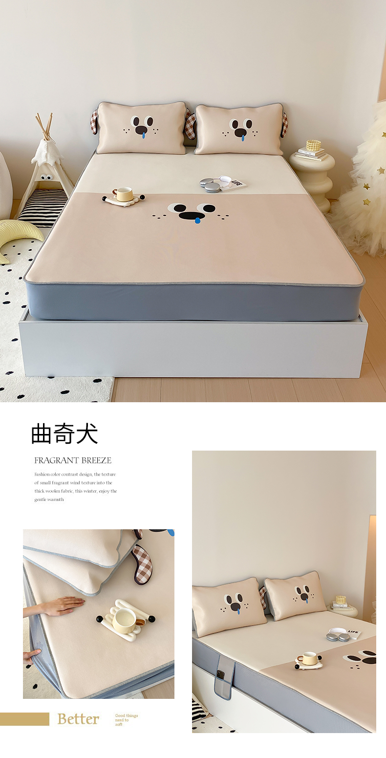 三味舒屋 2025新款抗菌异型大版数码印花冰丝席床笠款 曲奇犬