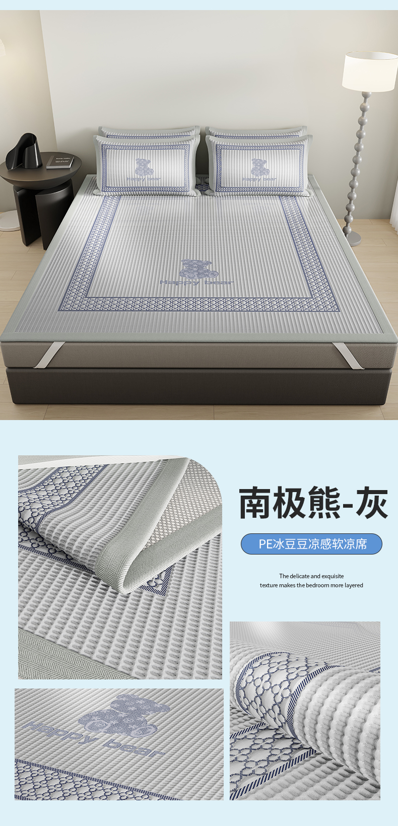 伊被源 2024新款冰豆豆凉感PE软凉席--南极熊 南极熊-灰