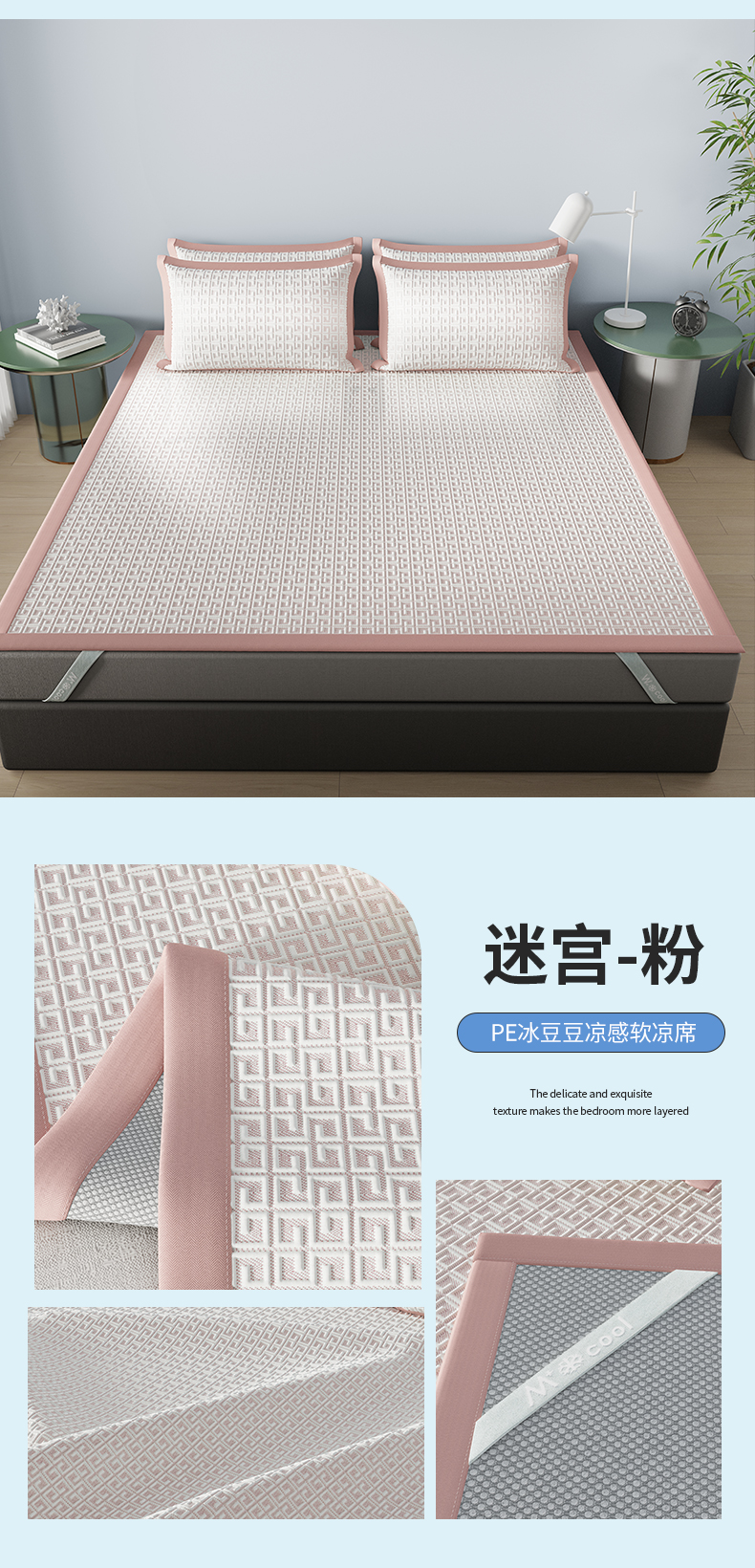 商品名称:伊被源 2024新款冰豆豆凉感PE软凉席--迷宫 迷宫-粉