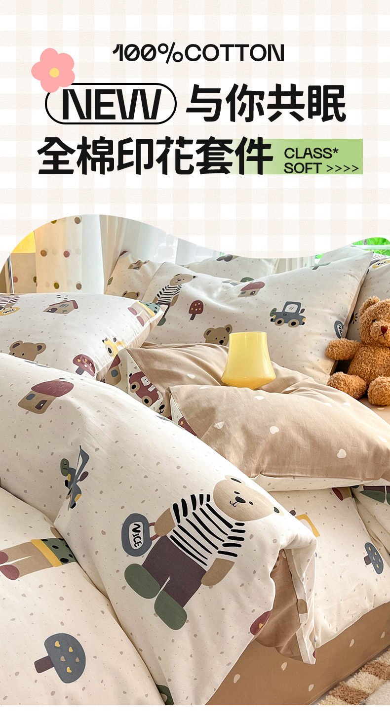 当前位置: 91家纺网 > 商品网购 > 床品套件 > 四件套 > 全棉普通四件套 > 多品家纺 2024年直播爆款12868全棉四件套 熊熊家园