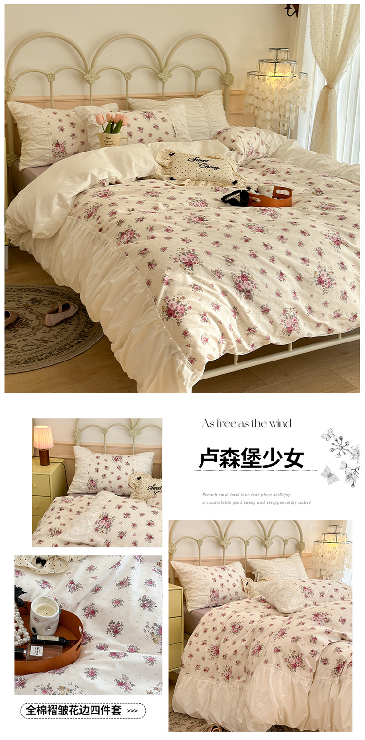商品名称:昔可 新款褶皱花边全棉复古风四件套 卢森堡少女