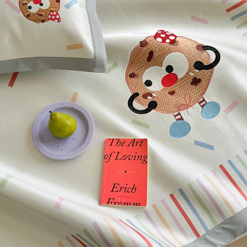 (总)柚子YOUTH 2025新款全棉A类母婴级卡通绣花四件套,吹泡泡,汉堡小猫,马上有钱,女孩的礼物,小狗面包,月亮船