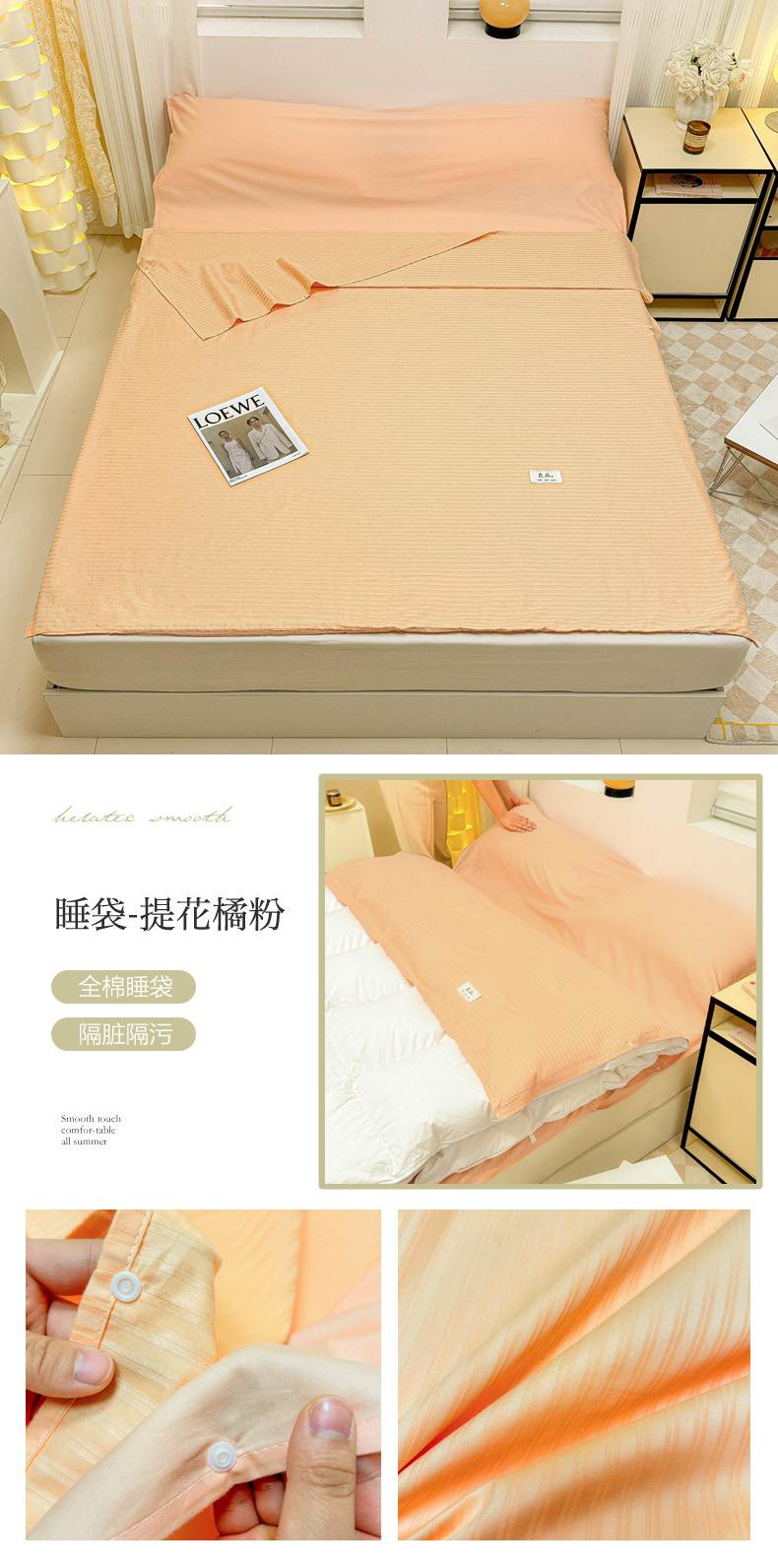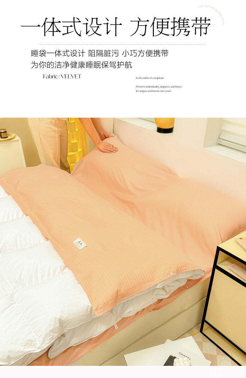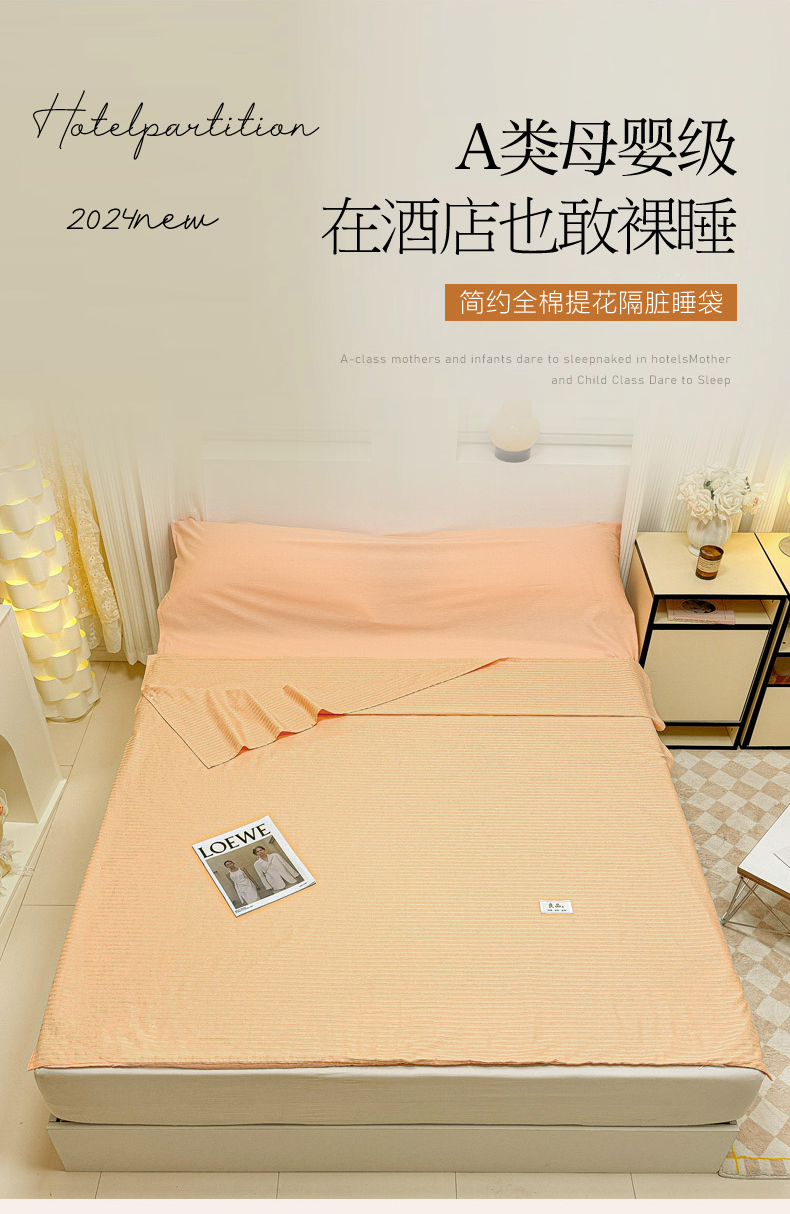 商品名称:眠博士 2024新款60贡缎提花 旅行睡袋场景一暖光 睡袋-提花橘粉