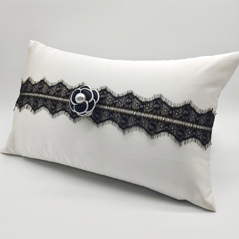 (总)澜屿 新款珍珠蕾丝小抱枕装饰枕腰枕枕芯,蕾丝珍珠(黑)