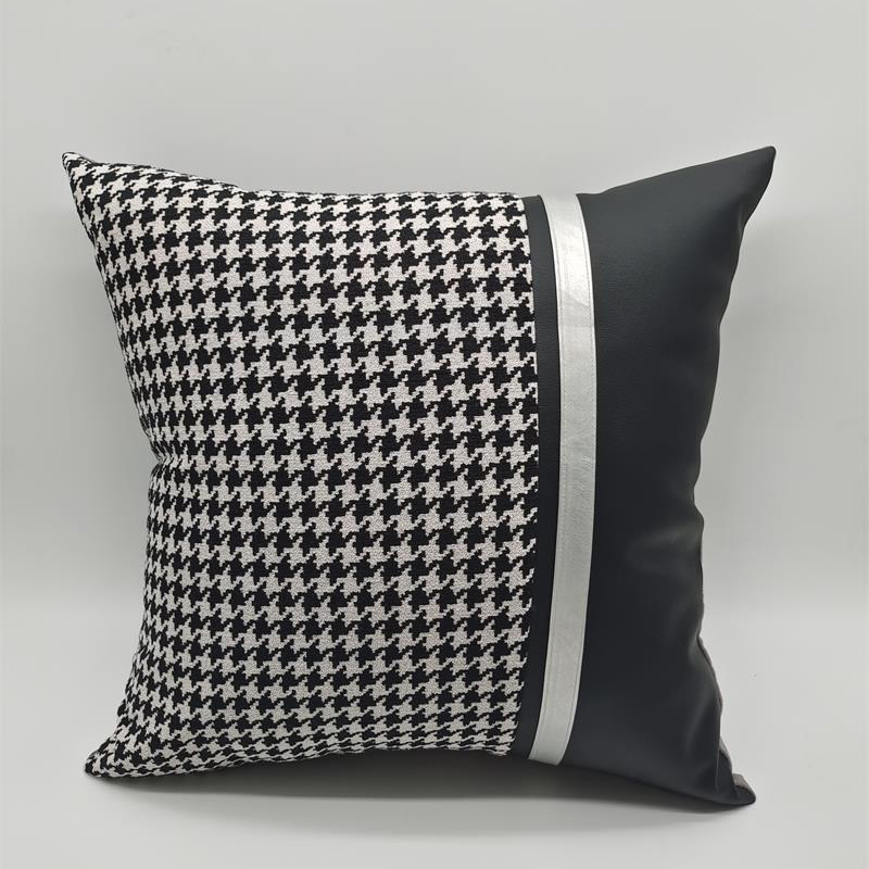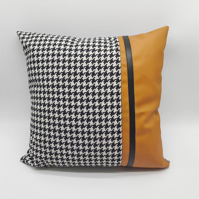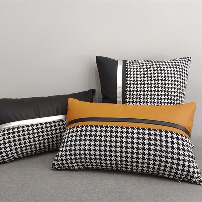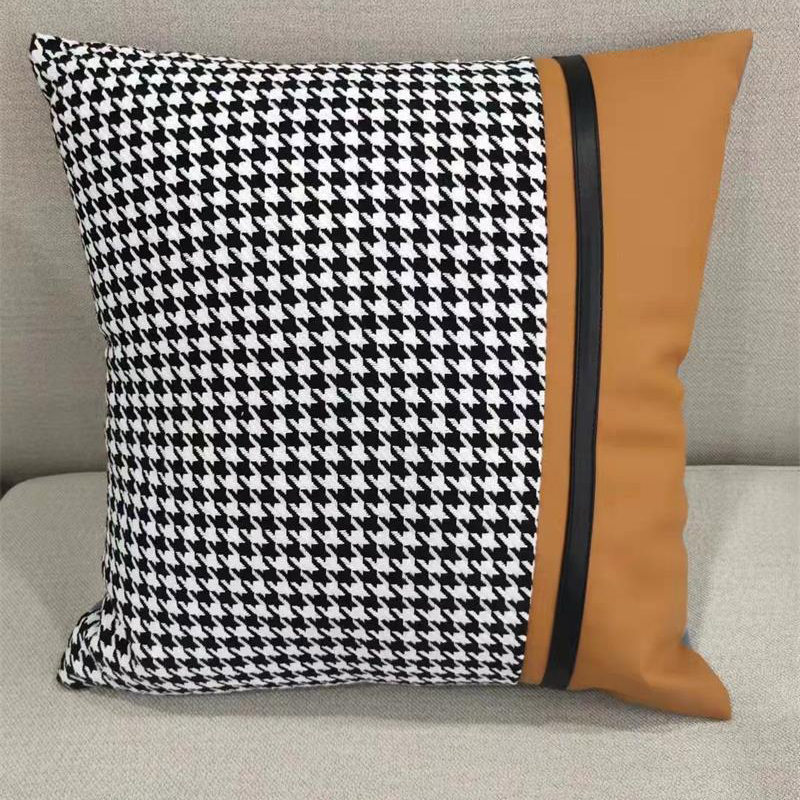 (总)澜屿 24款轻奢千鸟格拼接皮面小抱枕头枕芯腰靠枕
