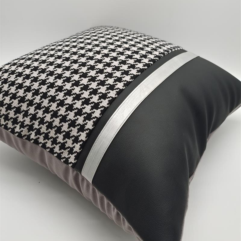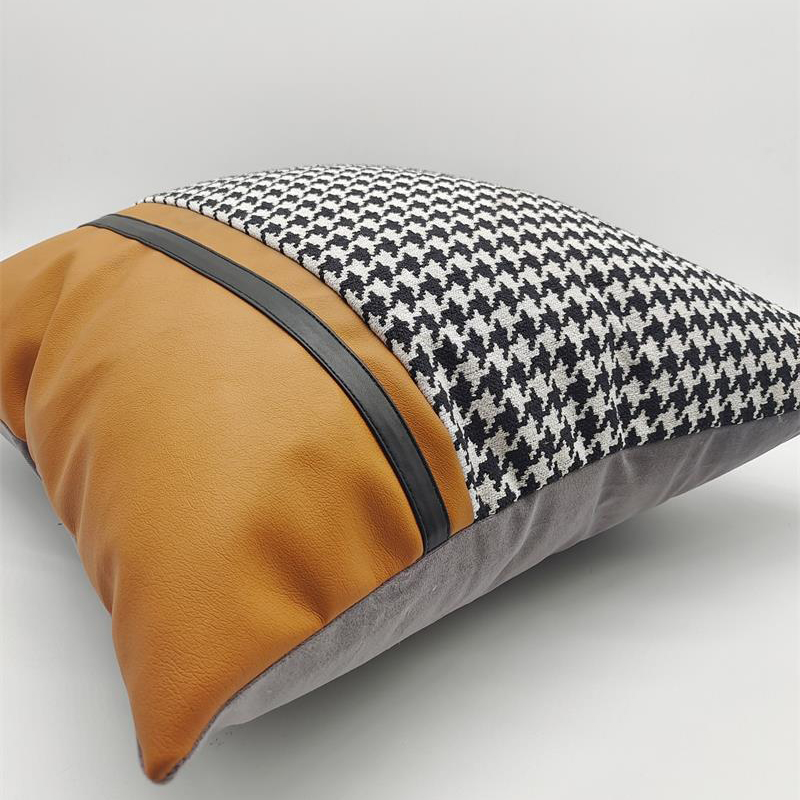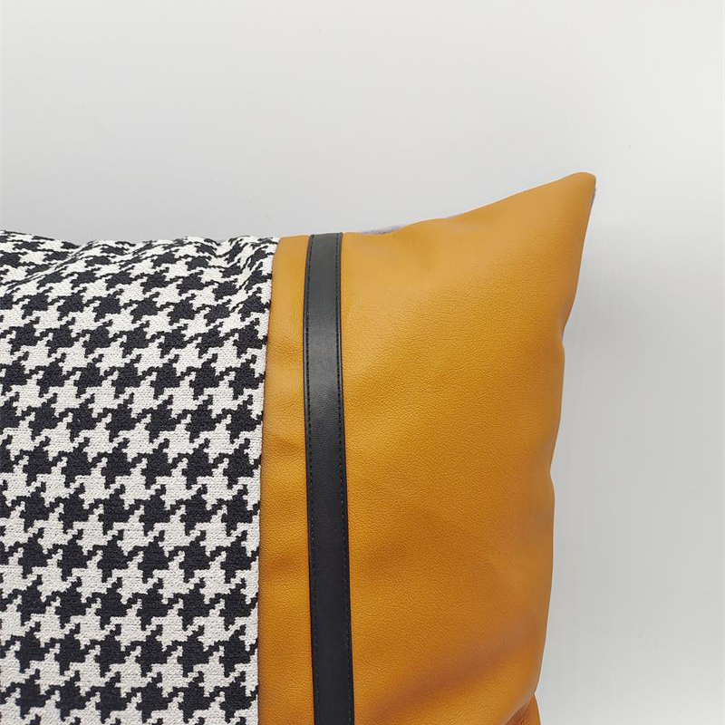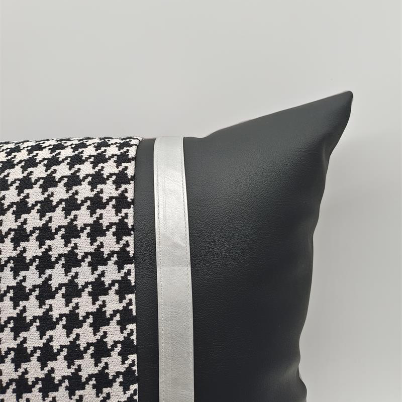 商品名称:(总)澜屿 24款轻奢千鸟格拼接皮面小抱枕头枕芯腰靠枕