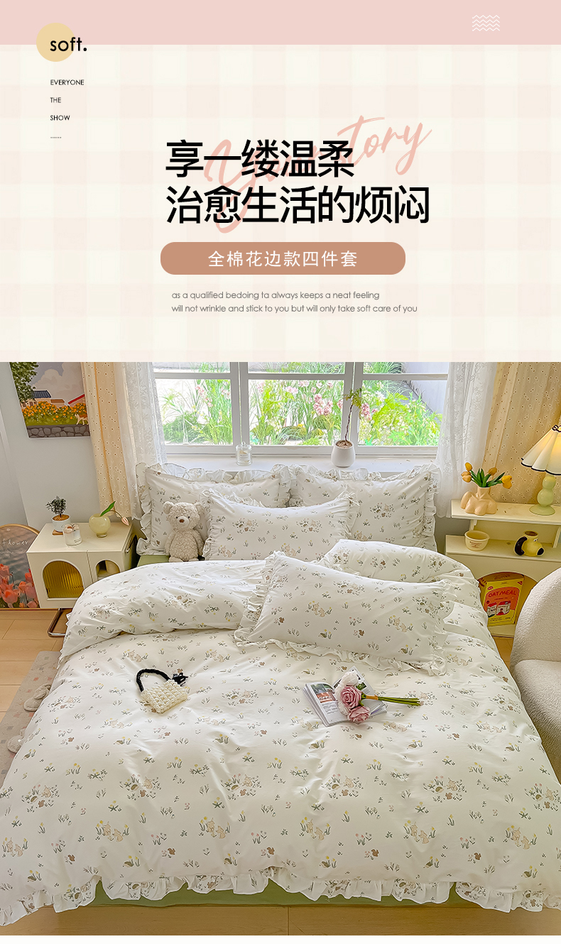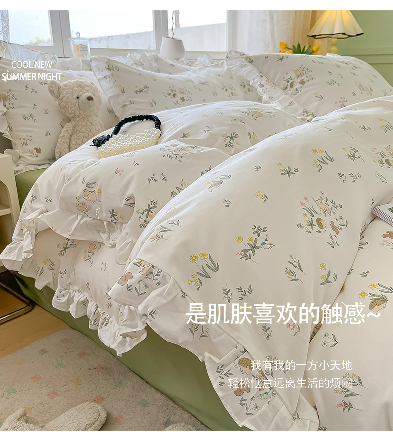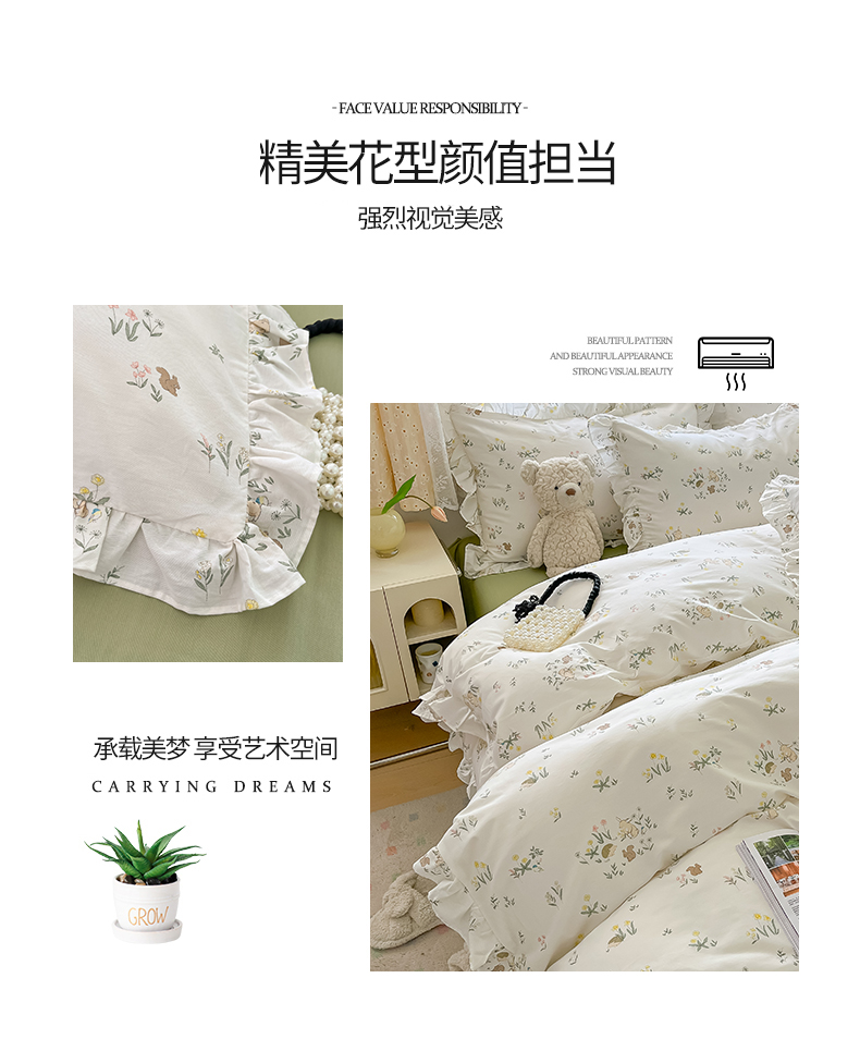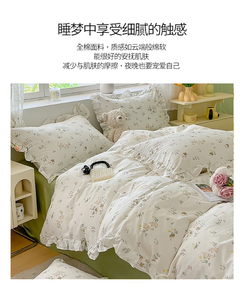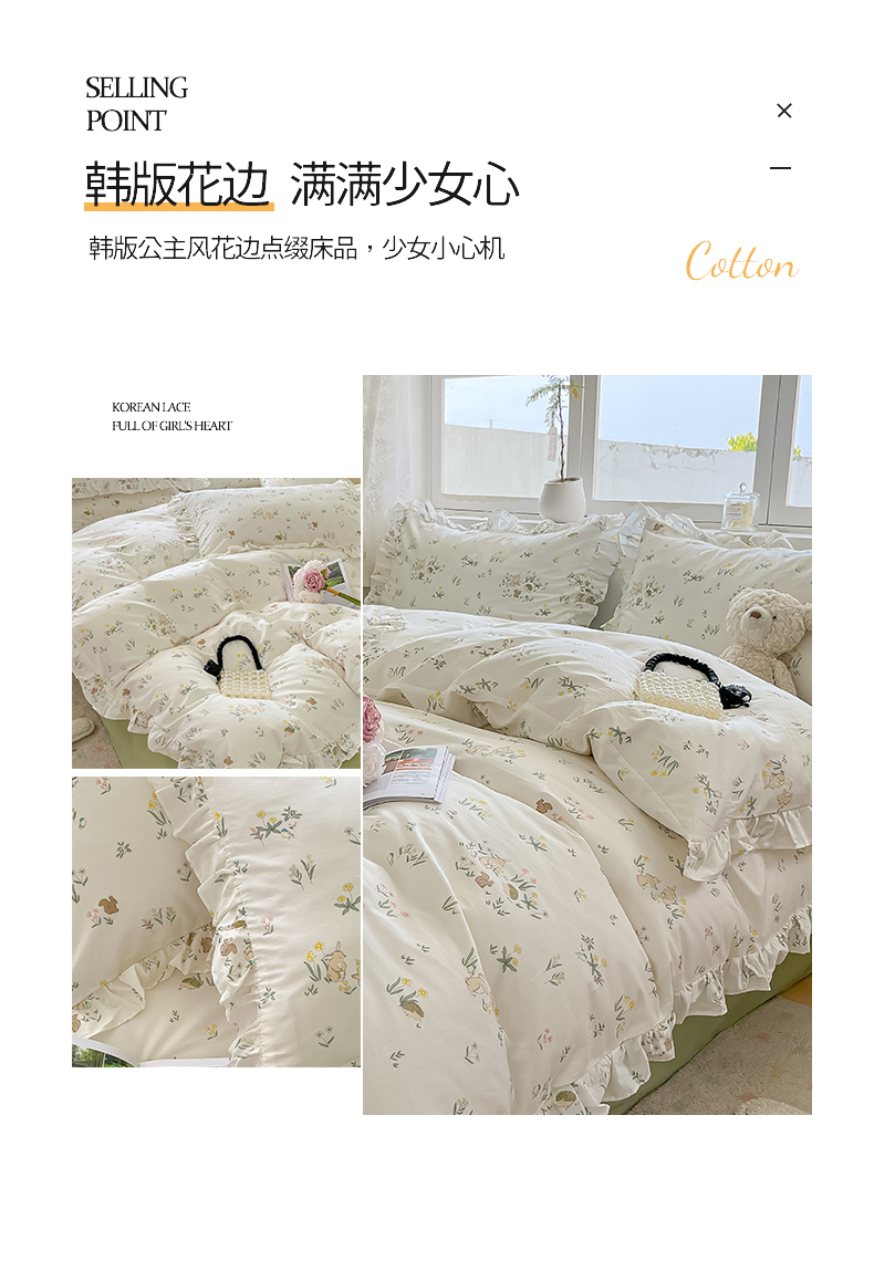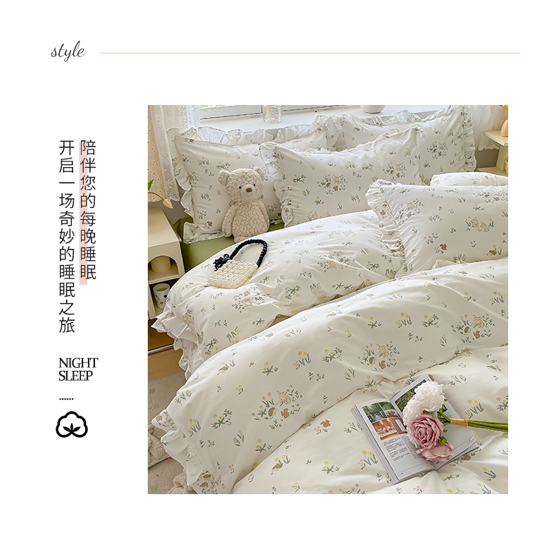 当前位置: 91家纺网 > 商品网购 > 床品套件 > 四件套 > 全棉普通四件套 > 柠馨 2024新款全棉印花浪漫花边款四件套 仙子