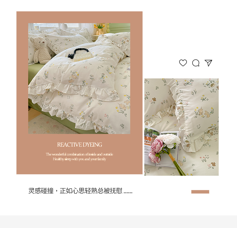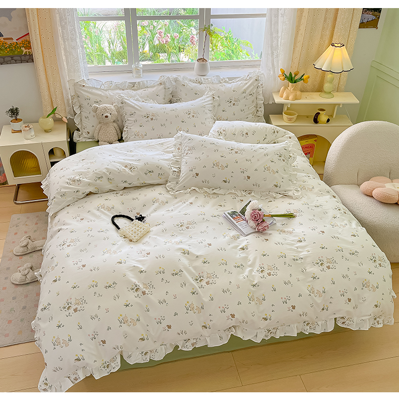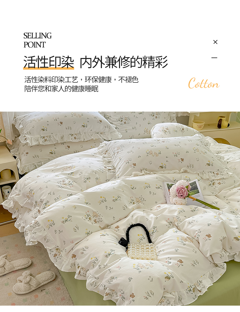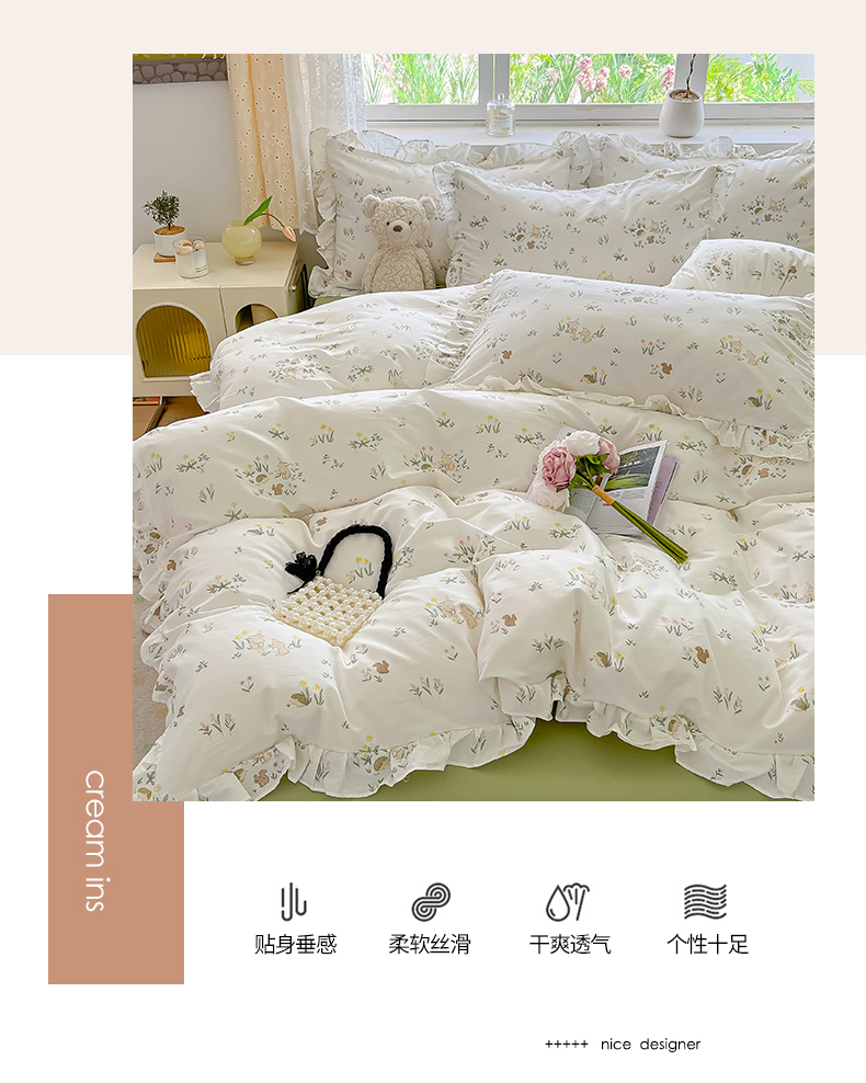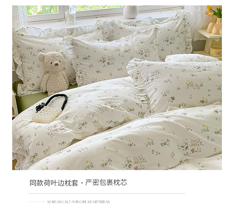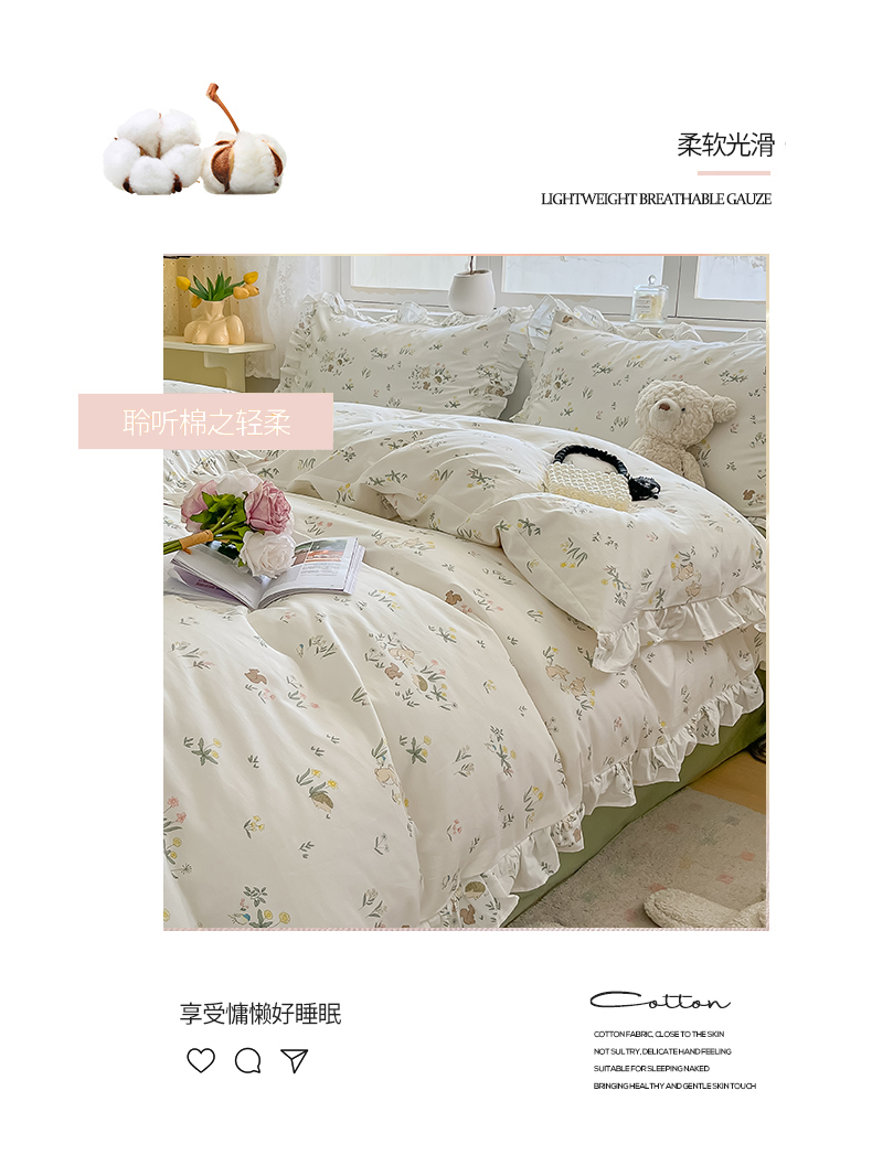当前位置: 91家纺网 > 商品网购 > 床品套件 > 四件套 > 全棉普通四件套 > 柠馨 2024新款全棉印花浪漫花边款四件套 仙子
