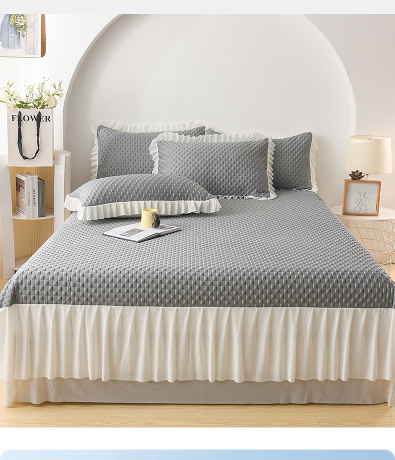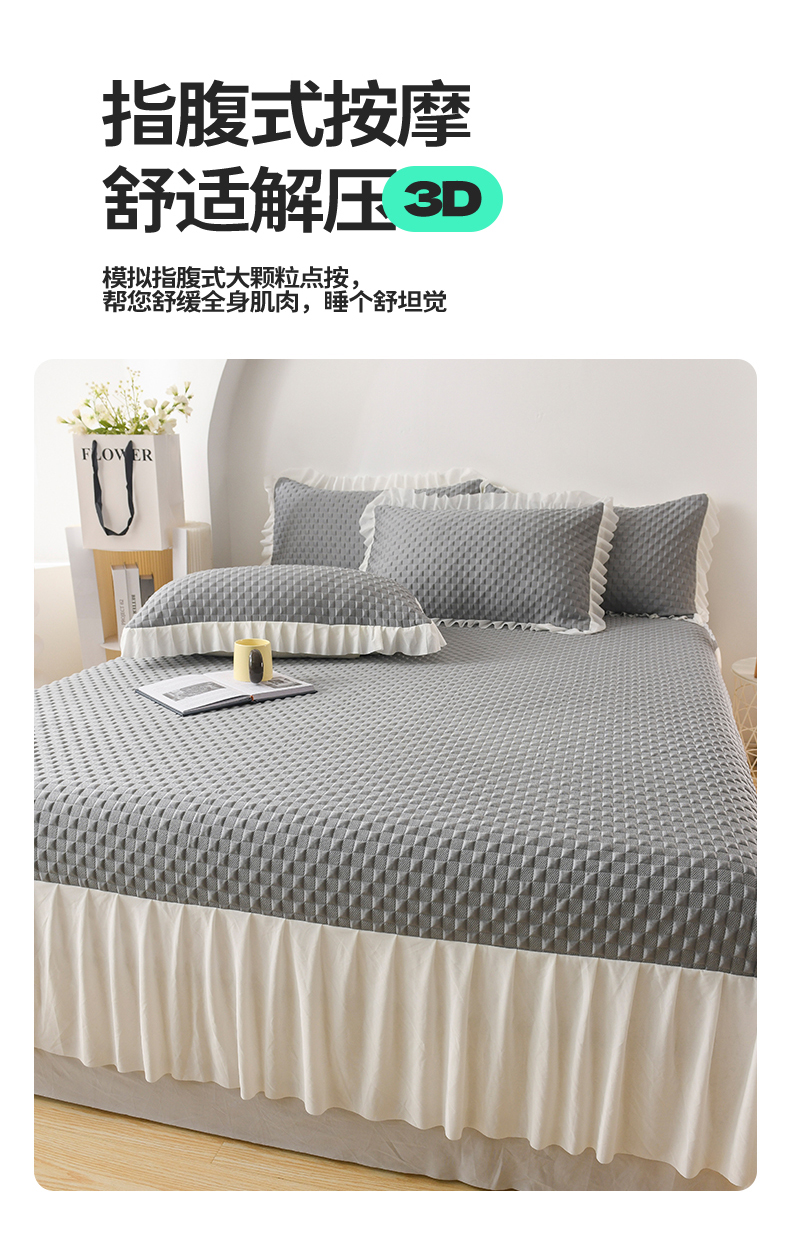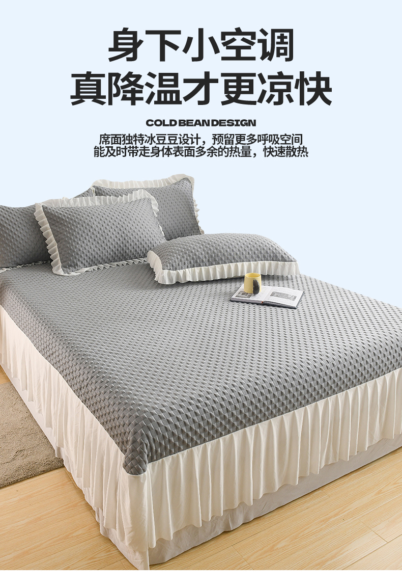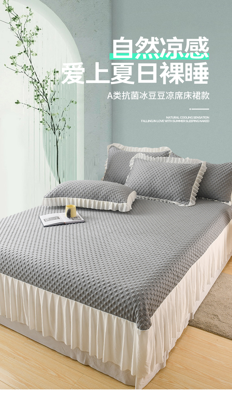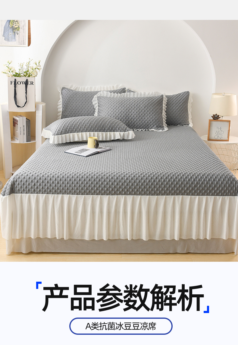 商品名称:乐家欣 2024新款A类抗菌冰豆豆床裙款凉席 菱格-极致灰