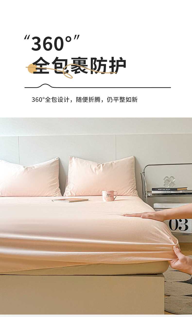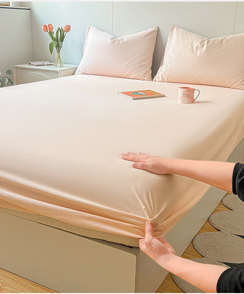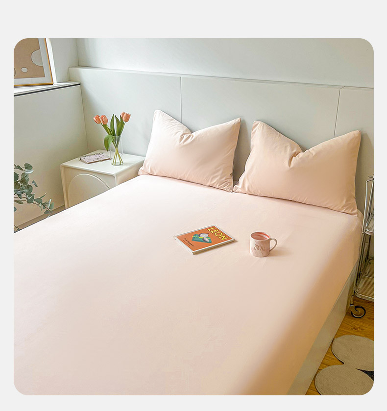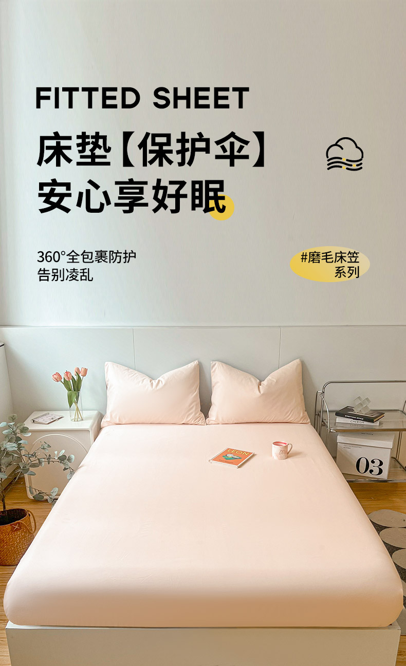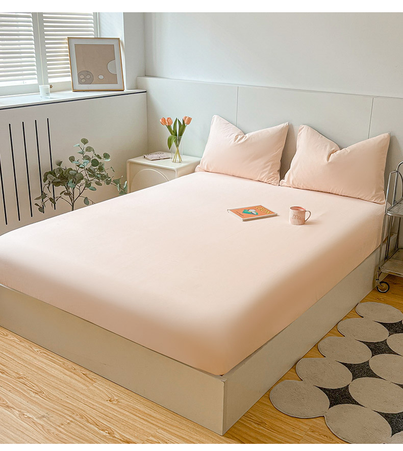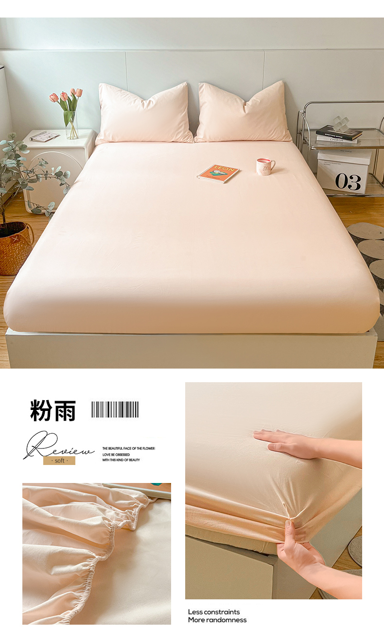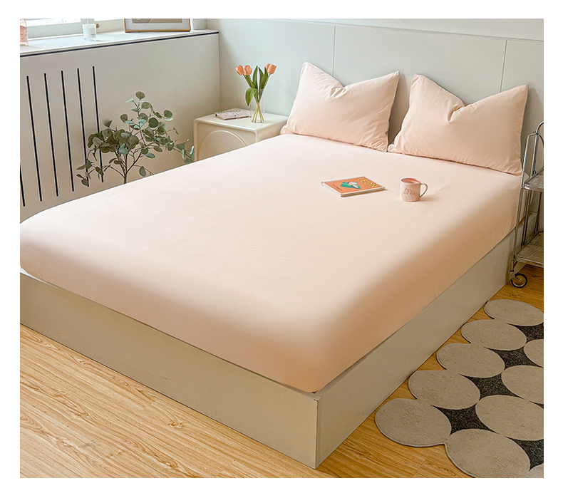 米粒家纺 2024新款纯色磨毛床笠 粉雨